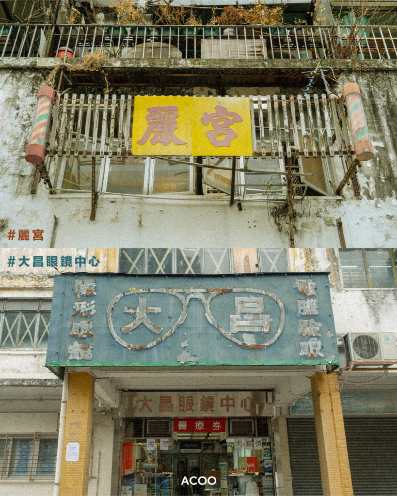 在每幢大廈、商舖,裏裏外外也遺留下不少「腳毛」,數十年前的報紙雜誌和書籍、唱片,舊舖獨有的裝修佈置,屋內的間隔等,全都是人們曾在這裏生活過的證明。不知在大家的回憶裏,又是哪一個角落最讓你感覺深刻——麗宮髮廊、大昌眼鏡中心、糧食公司、正興藥行、中源餐廳……還是那個小花圃、某條走廊,或是你的家?