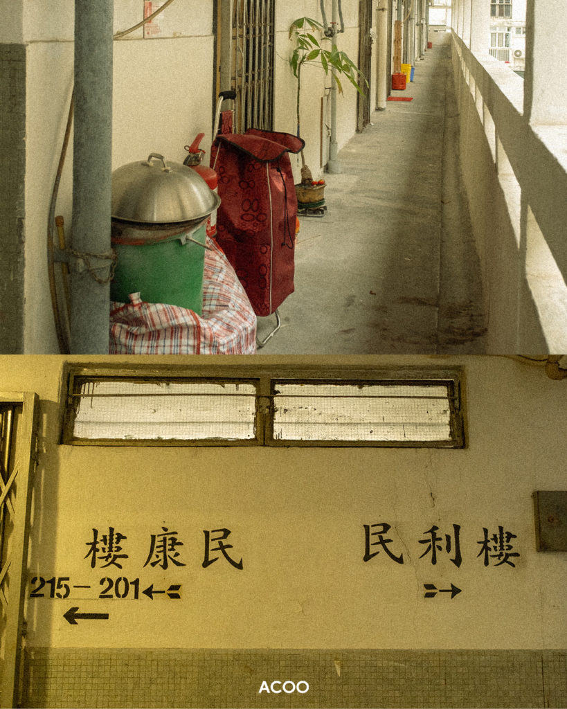 現在,居民陸續按管理處的安排遷出,鐵閘被鐵鏈鎖上,貼上白紙黑字的告示,冷清的氛圍與叔叔孩堤時的熱鬧,風光截然不同。「因為呢度唔係政府屋邨,係私人屋邨,治安比較好。暑假時,媽媽就會放我哋出嚟,喺走廊『捉依因』、『兵捉賊』,好好玩!」從前的屋邨,左鄰右里的關係非常密切,「大家都係6、7歲,一齊大、一齊玩。」隨着屋邨的遷拆,這些鄰里間的情誼,又能否延續下去呢?