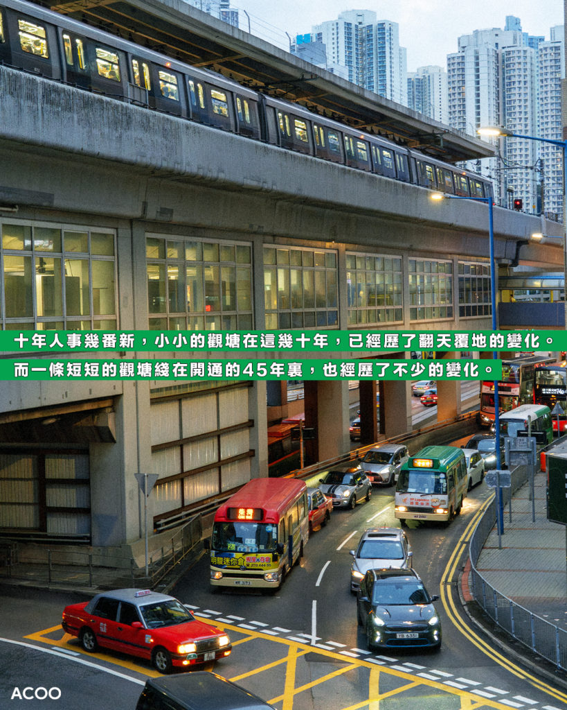 十年人事幾番新,小小的觀塘在這幾十年,已經歷了翻天覆地的變化。而一條短短的觀塘綫在開通的45年裏,也經歷了不少的變化。對於很多觀塘人來說,以時間、速度和塞車風險的平衡下,坐港鐵過海,是最好的方法,只因在繁忙時間「老母區」的塞車情況,真不是「人咁品」。