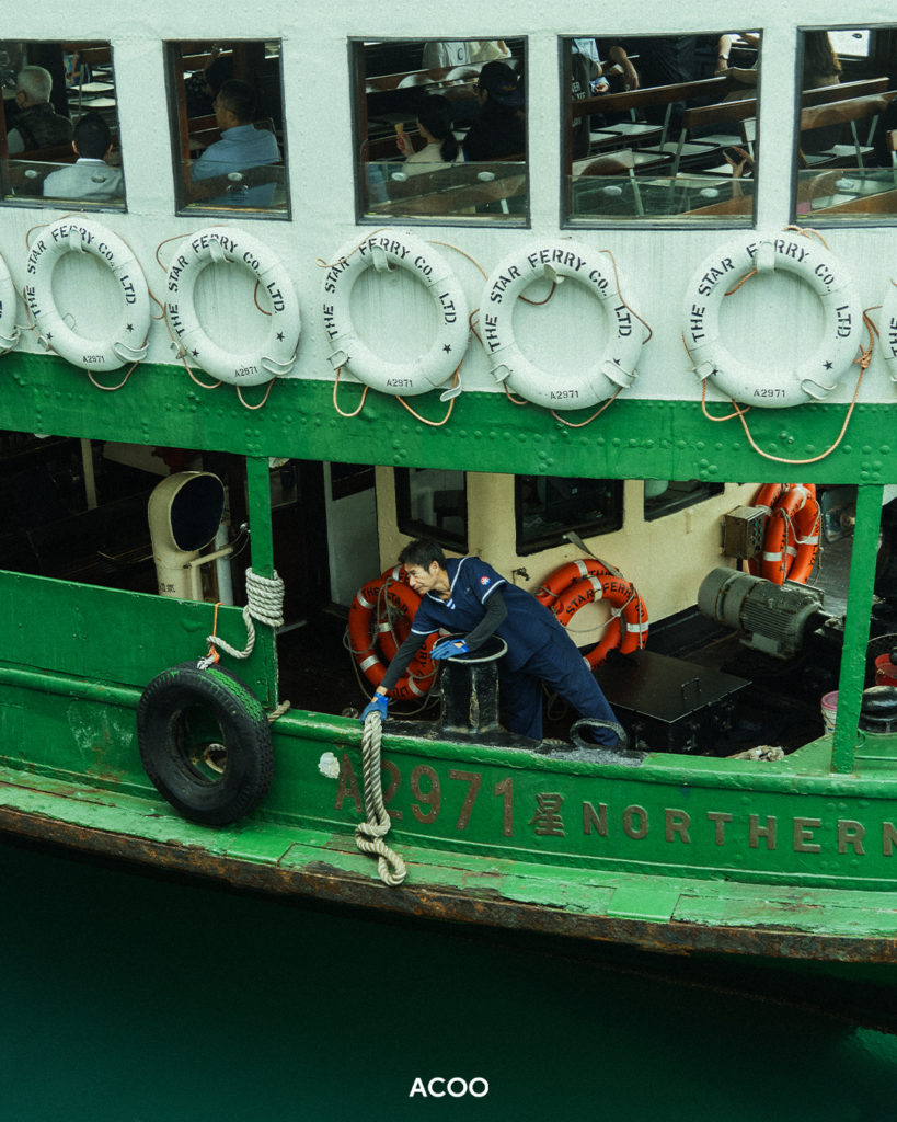 只隔了一層,風光已不盡相同。上層能欣賞更廣更闊的維港風光;下層則能嗅着混合了海水鹹和柴油的味道,近距離觀察水手拋纜和解纜,也是另一種體驗。