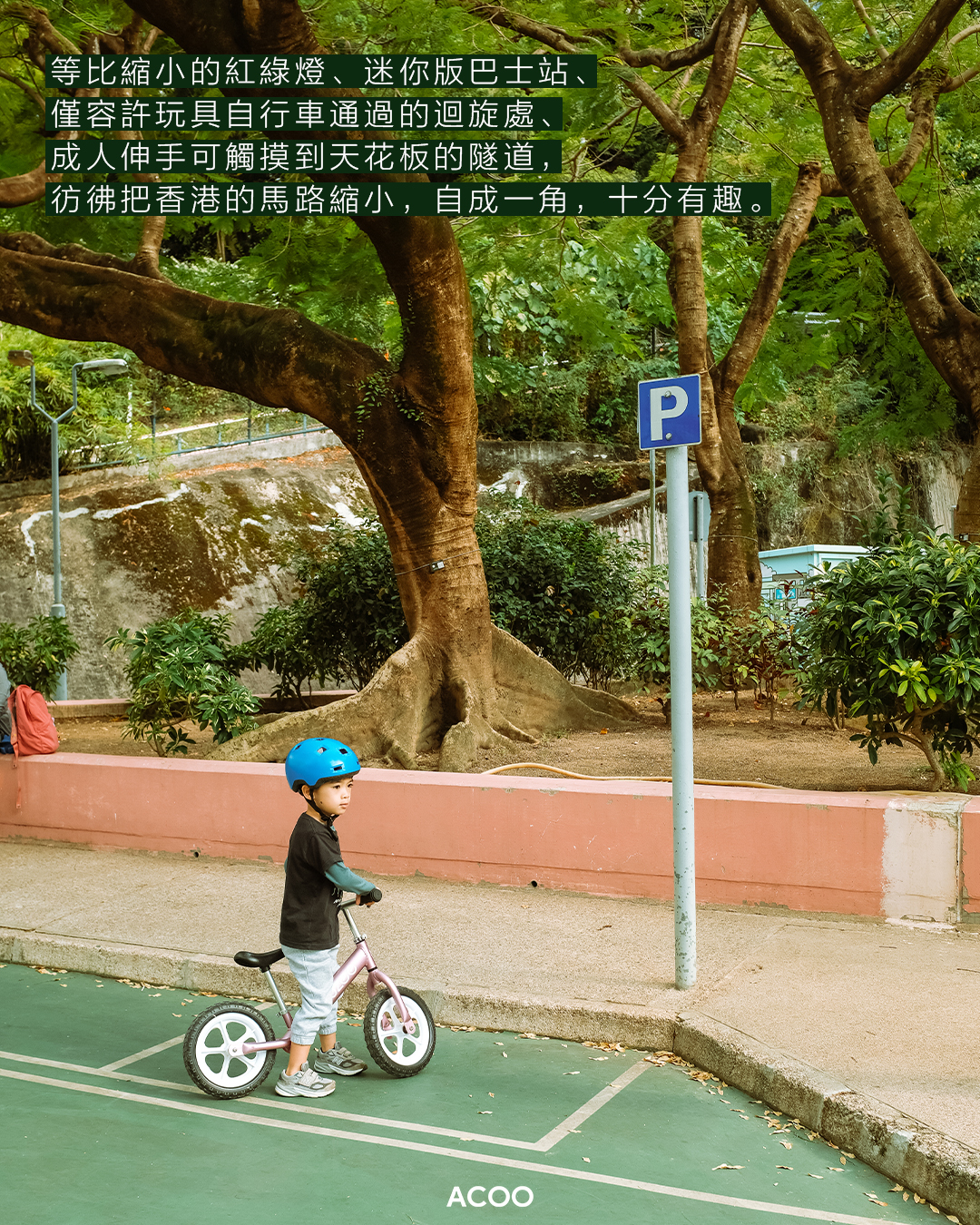 近年香港不少新式遊樂場落成,打破一般大眾對於公園的印象,不論大人細路都能夠從中獲得快樂。近日,又有人在社交平台分享交通安全城,說這個地方猶如「小人國」——等比縮小的紅綠燈、迷你版巴士站、僅容許玩具自行車通過的迴旋處、成人伸手可觸摸到天花板的隧道,彷彿把香港的馬路縮小,自成一角,十分有趣,喚起了不少90後的童年回憶。
