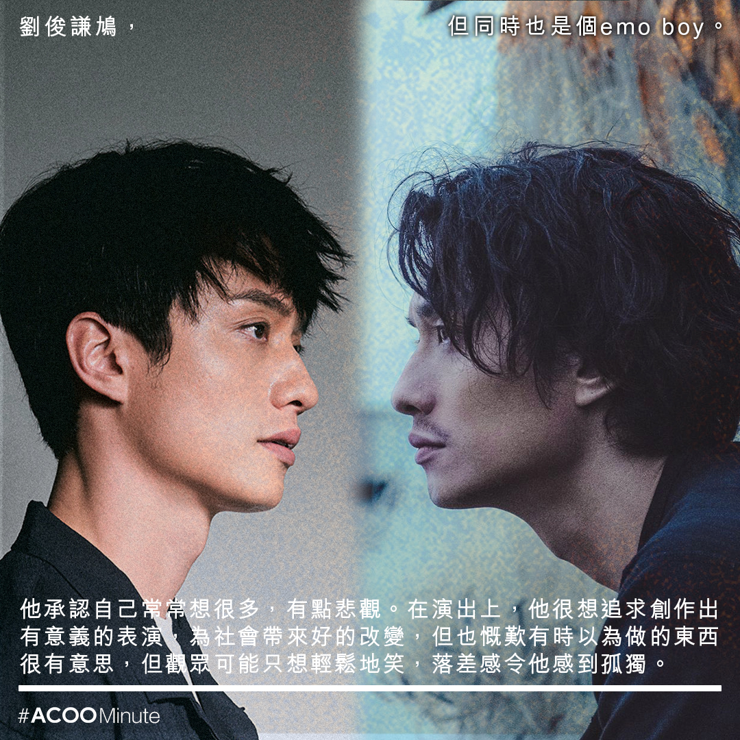 近年見到劉俊謙出現在銀幕上時,會有種眼睛只想一直追著他看的感覺。除了是因為他在演出上的投入之外,也因為他這個人有層次。劉俊謙不只是個靚仔,同時也是個有點鳩的emo boy。