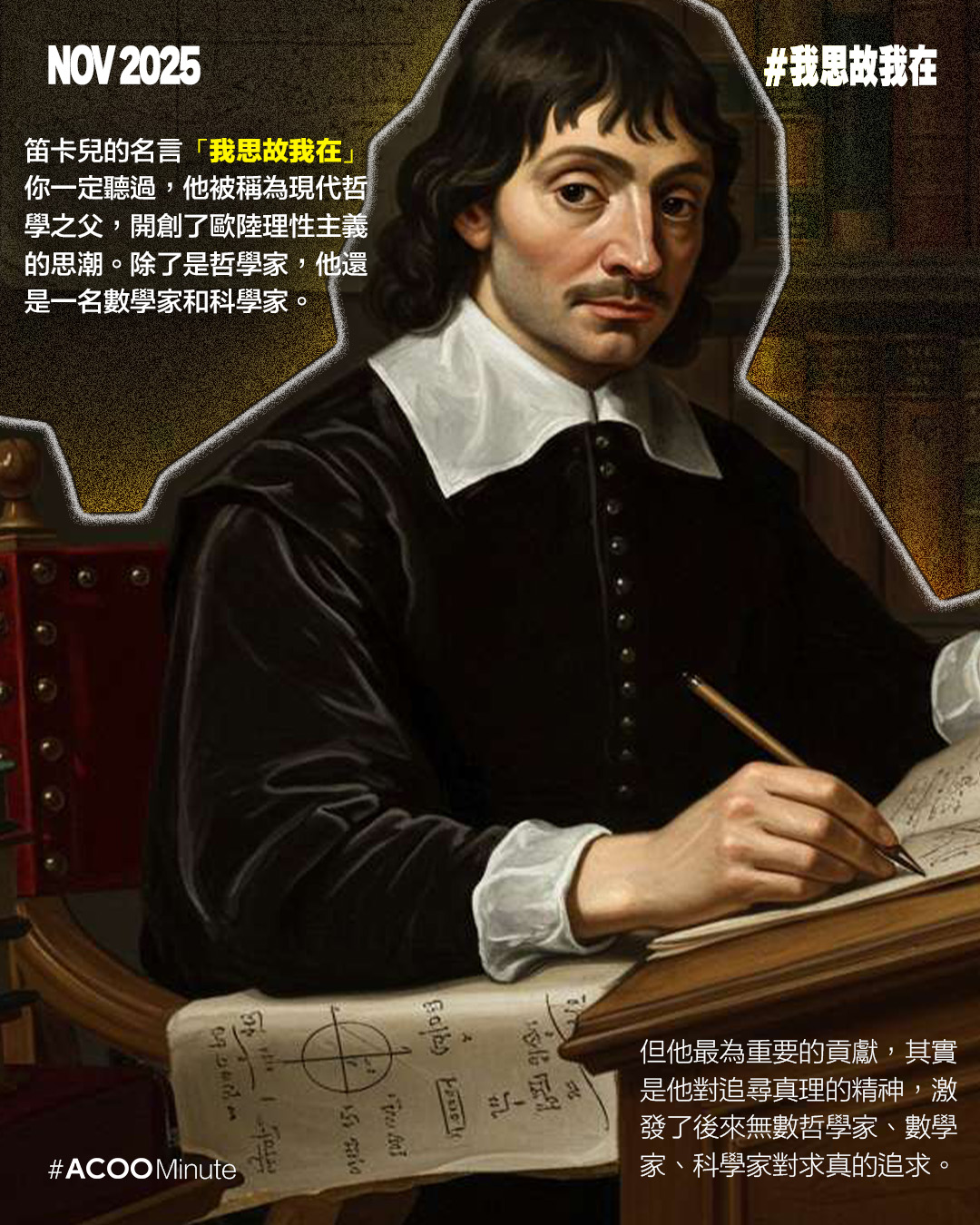 笛卡兒的名言「我思故我在」你一定聽過,他被稱為現代哲學之父,開創了歐陸理性主義的思潮。除了是哲學家,他還是一名數學家和科學家,例如發明了數學的XY軸座標,創立了解析幾何,為後來的微積分奠定基礎;在科學上,他提出了機械論自然觀,並對光學及物理學等產生深遠影響。但他最為重要的貢獻,其實是他對追尋真理的精神,激發了後來無數哲學家、數學家、科學家對求真的追求。