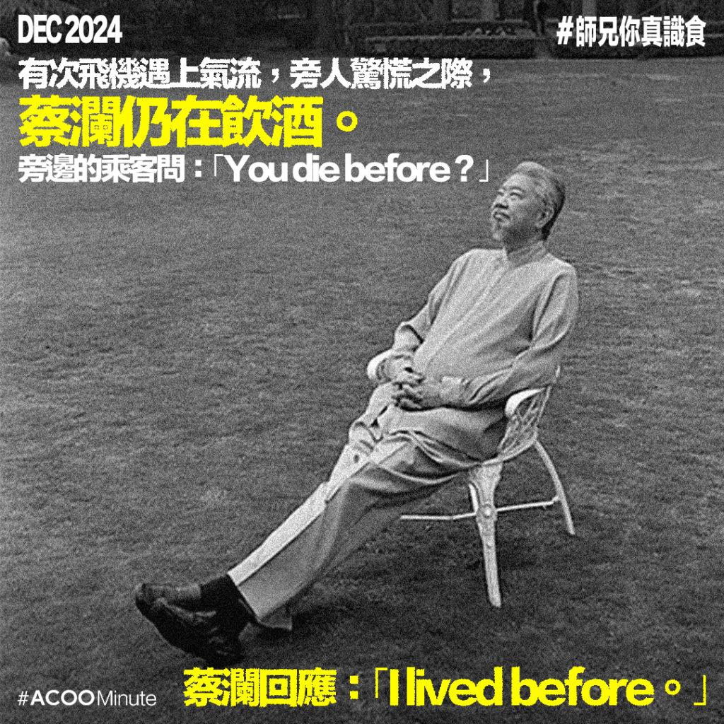 【本來就該這樣】蔡瀾的豁達人生觀 「我大半生一直研究人生的意義,答案還是吃吃喝喝。」