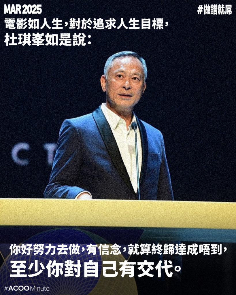 【杜sir提你今日做得未夠好】杜琪峯火爆只因追求專業 從未滿足不停學習 「你好努力去做,有信念,就算終歸達成唔到,至少你對自己有交代。」