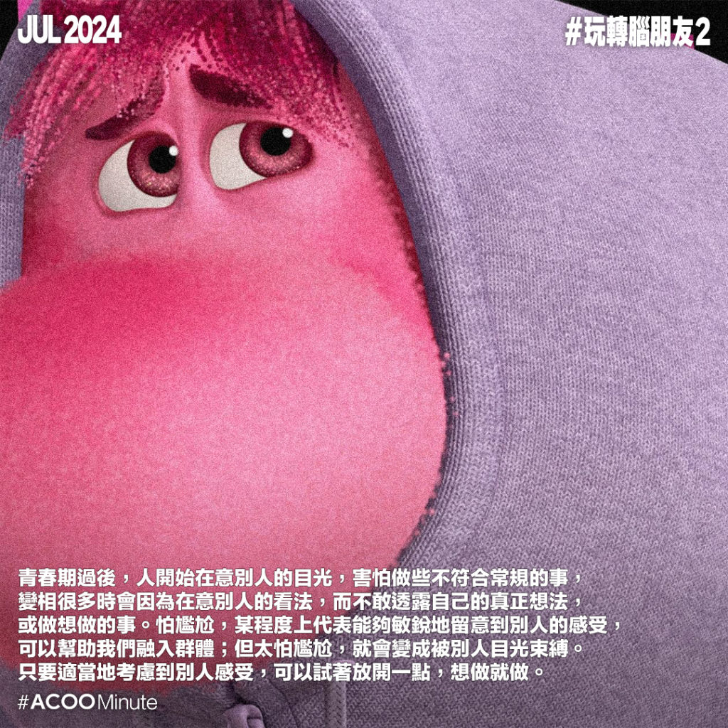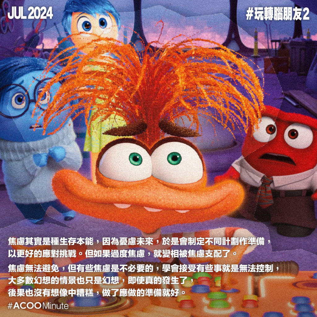 《玩轉腦朋友2》近日上映,繼續圍繞主角腦內的情緒腦交戰。主角韋莉踏入青春期,對即將到來的高中生活感到不安,開始渴望朋輩認同,亦產生對自己能力的質疑,自我形象受到動搖。人的成長,意味著更難得到純粹的快樂,取而代之的是更多複雜的情緒。今集幾個新的情緒角色,代表著 #焦慮、#尷尬、#羨慕、#厭倦。這幾種情緒聽來都不怎麼正面,卻老是常出現,那我們該如何應對?