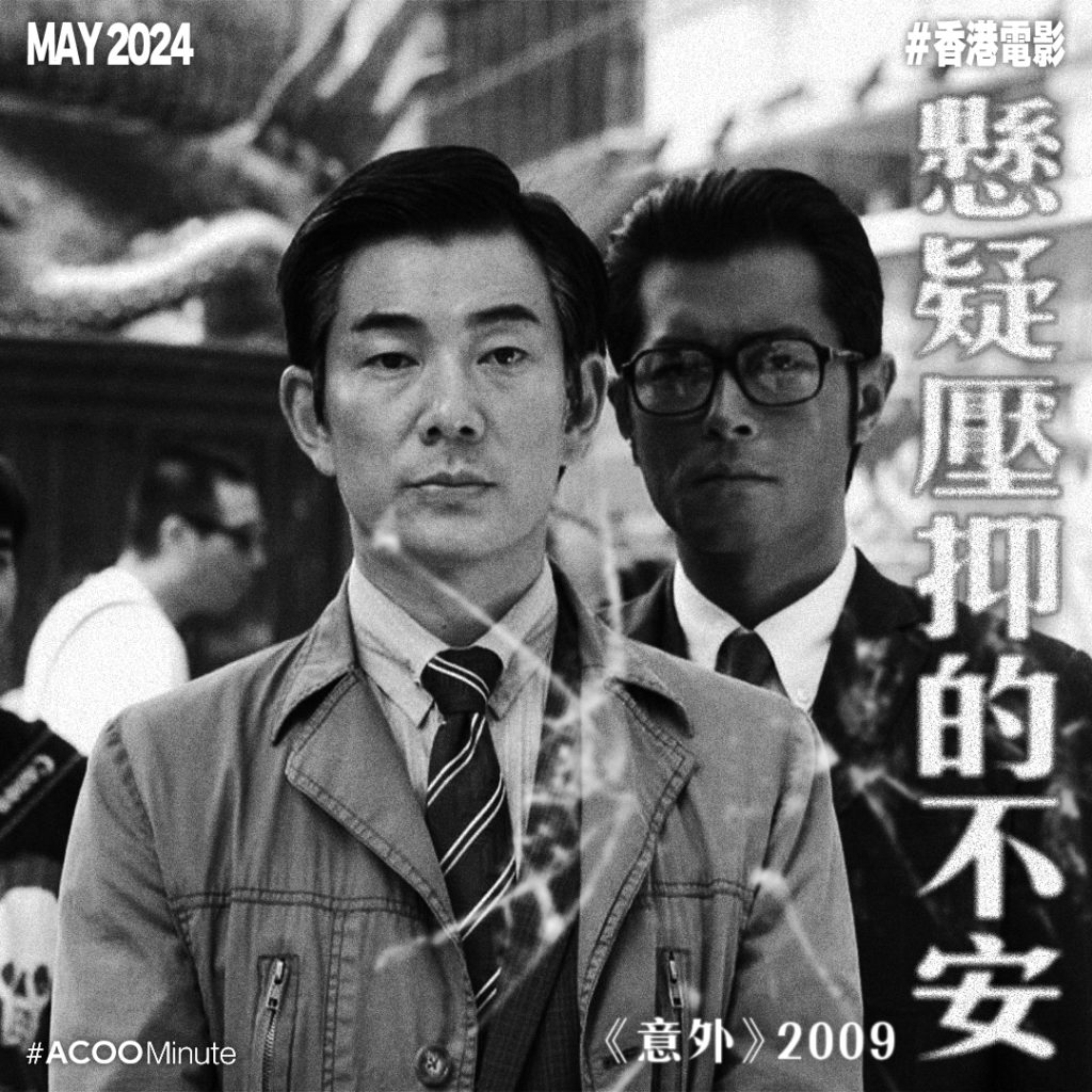 《意外》是鄭保瑞加入銀河映像後的作品,講述將暗殺偽裝成意外的殺手集團,後來遇上各種事故,令人分不清到底是意外還是謀殺,主角在懷疑中亦逐漸迷失。電影中充斥著這種壓抑不安的氣氛,令人同感角色承受的心理壓力,懸疑感十足。