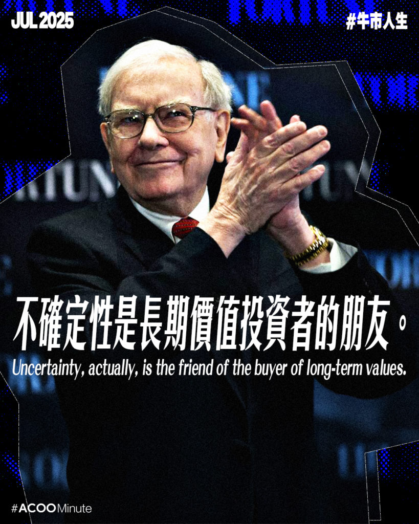 「不確定性是長期價值投資者的朋友。」對巴菲特而言,投資是長跑,而非短跑,只要相信股票的內在價值,就不必擔心短期的市場波動。在充滿不確定性的人生,也應如長跑,只要方向正確,專注自己的目標,終將抵達終點。股神的處世之道,說到底就是知道自己在做甚麼,然後選擇相信自己,不要輕易被旁人動搖。說來簡單,卻實不易。巴菲特之所以為神,也就是因為他這種超乎常人的心志。