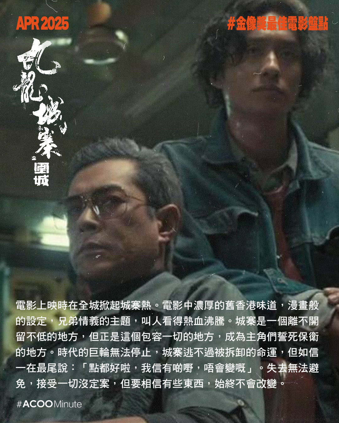 金像獎頒獎典禮即將舉行,今年入圍最佳電影的作品,有成為全城熱話、打破票房紀錄的,也有圍繞小眾社群、充滿人文關懷的。包括《九龍城寨之圍城》、《破·地獄》、《爸爸》、《從今以後》以及《看我今天怎麼說》,無論是熱血動作片還是觸動人心的社會議題之作,都展現出香港電影的多元與深度。這些作品之所以備受關注,不僅因為技術精湛,更因為它們讓我們在光影之中找到情感共鳴。