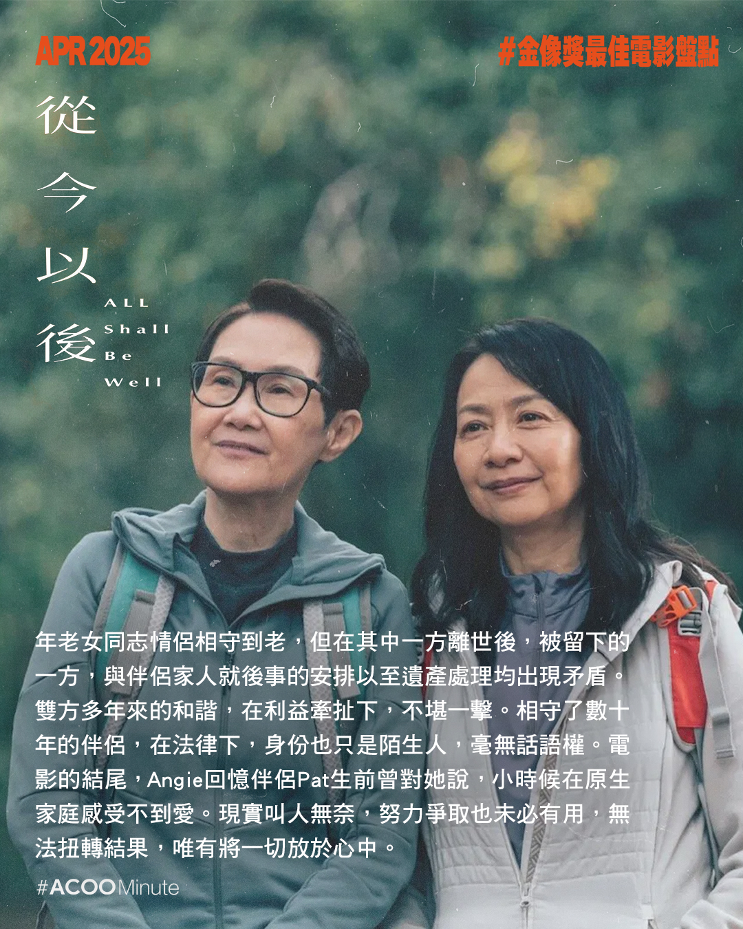 有人說近年香港電影都很沉重,但也許正正是這些沉重的故事,為失落的我們帶來共鳴,找到情緒出口。傷痛是人生的一部分,當它發生後,我們該如何與悲傷共處,又如何面對執念?電影未必能提供答案,但在當中我們會找到安慰,再有力氣繼續走下去。