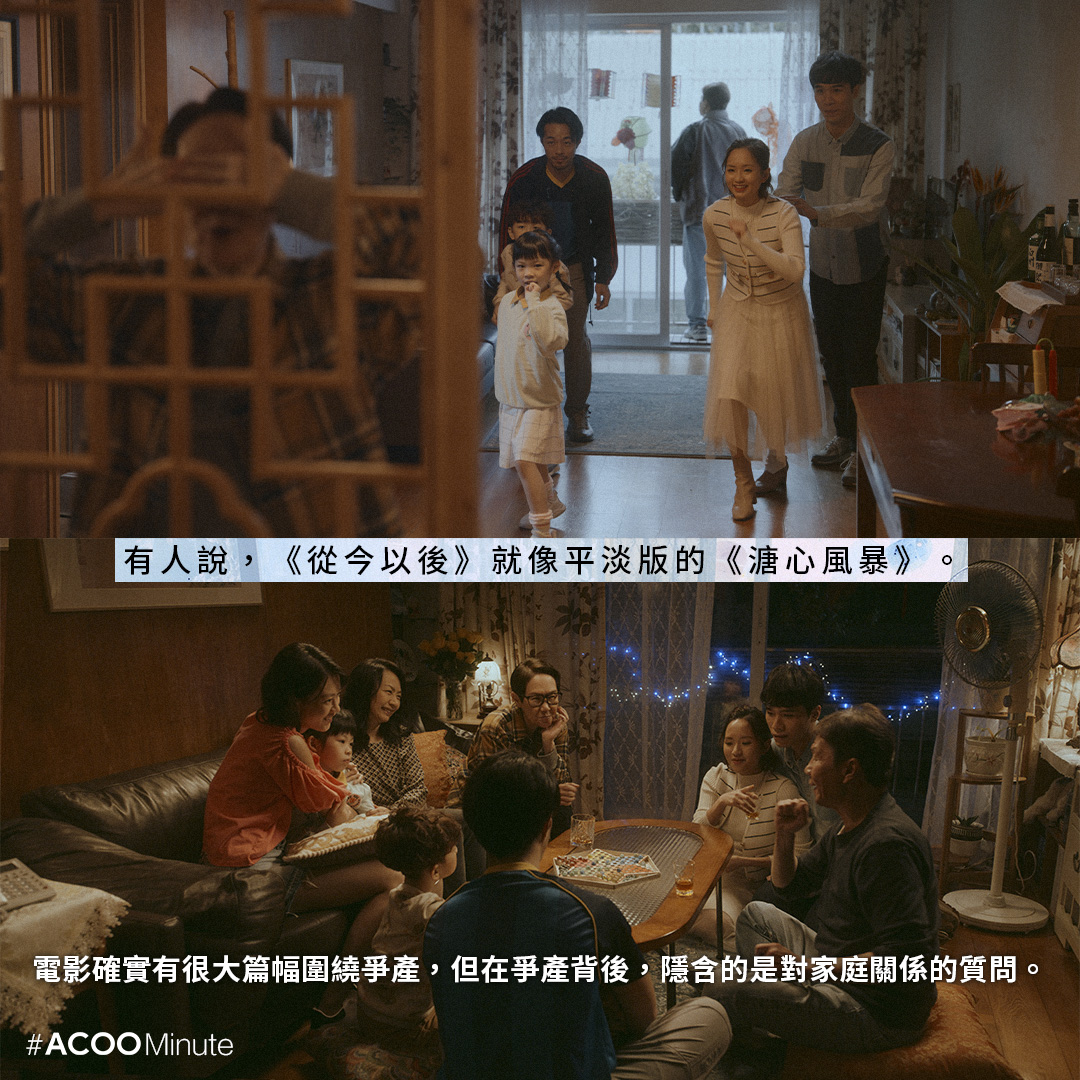 電影講述兩個年老女同志相守數十載,與對方家人相處融洽。其中一方突然離世,被留下的一方,與伴侶家人就後事的安排,以至遺產處理,均現衝突。有人說,《從今以後》就像平淡版的《溏心風暴》。電影確實有很大篇幅圍繞爭產,但在爭產背後,隱含的是對家庭關係的質問。