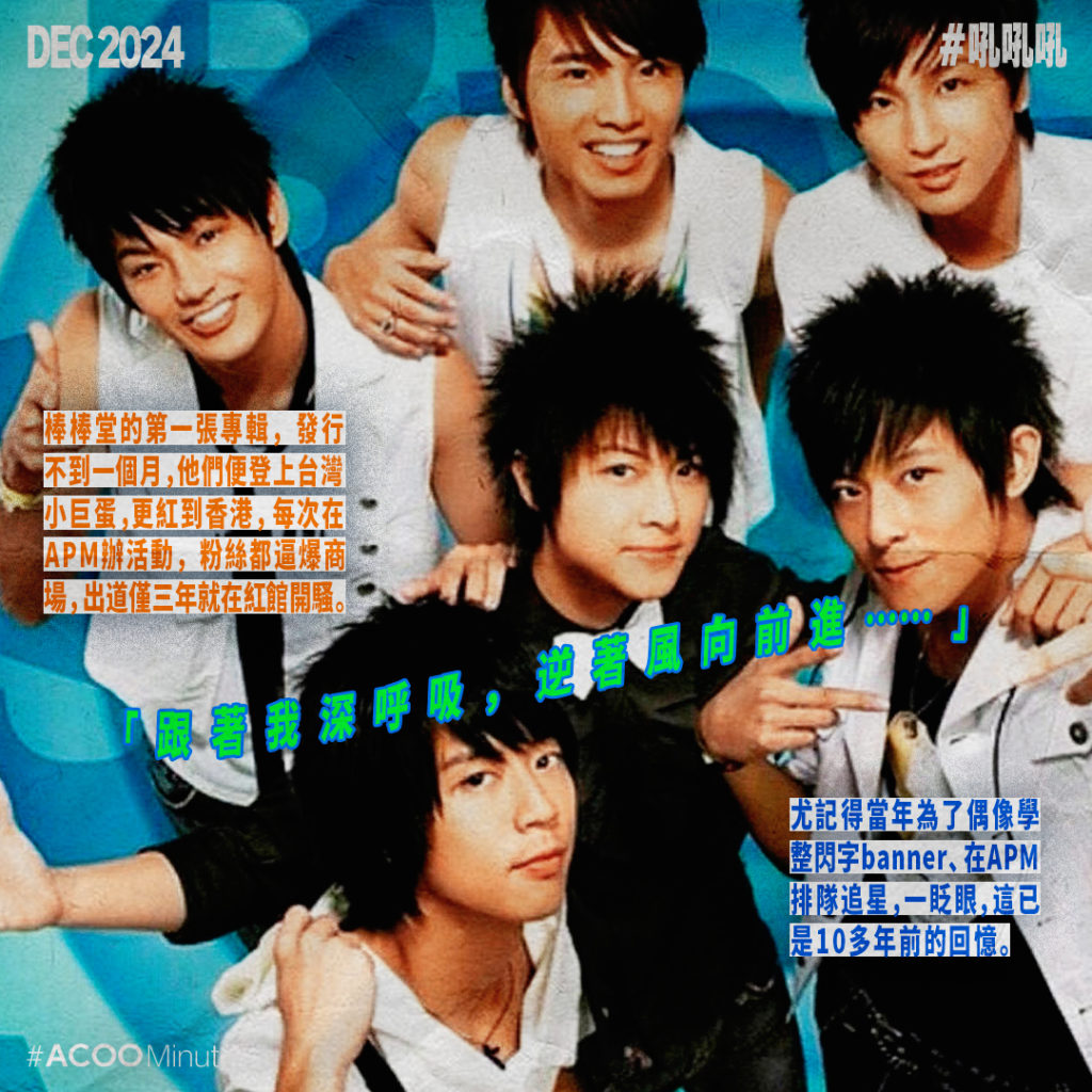 「跟著我深呼吸,逆著風向前進⋯⋯」棒棒堂是很多人青春時代的追星回憶。尤記得當年為了偶像學整閃字banner、在APM排隊追星,做過這些青春事的我們都已不再年輕了。棒棒堂解散已15年,近日合體拍綜藝,追過棒棒堂的我們激動之餘,亦懷念起那些青澀的時光。