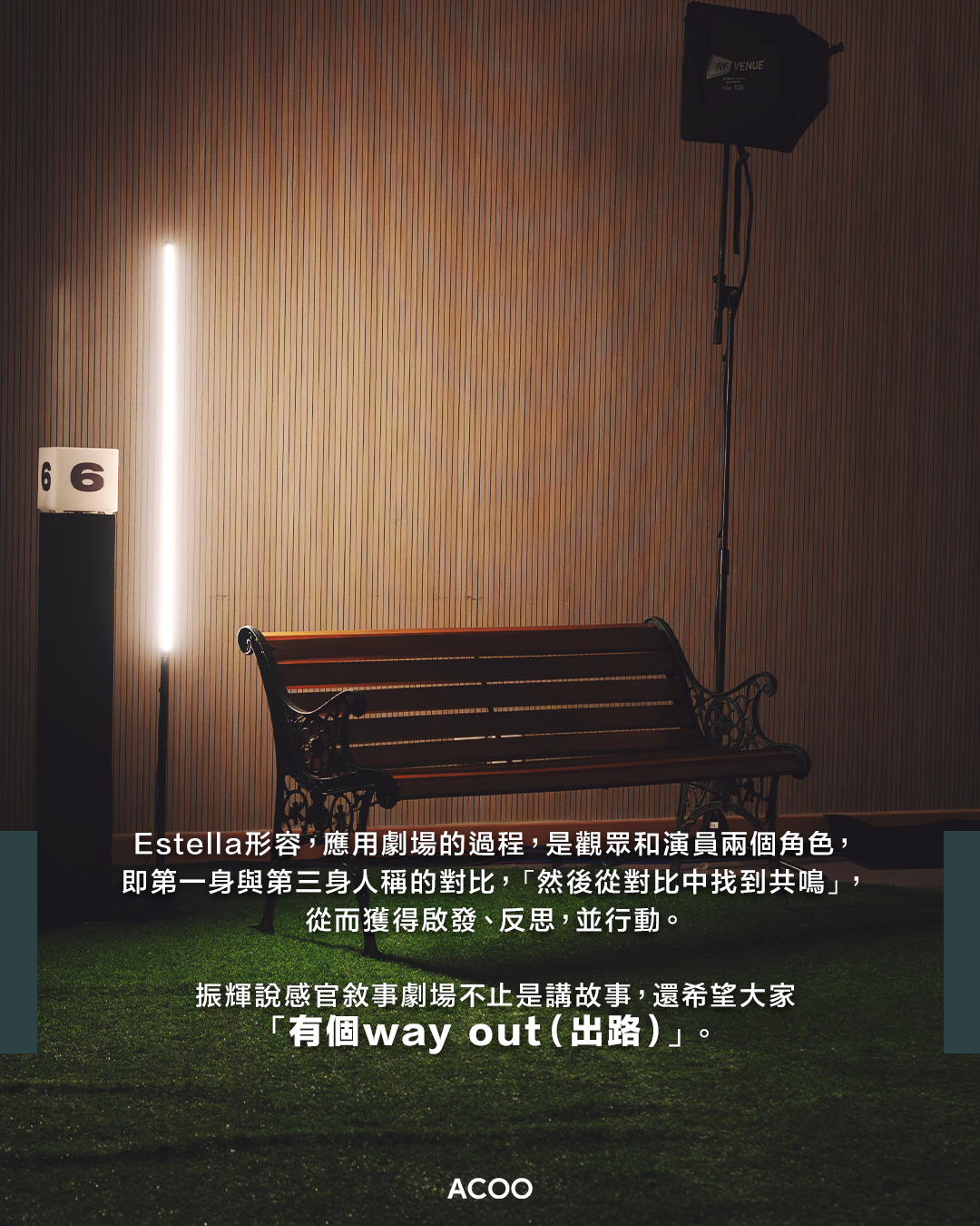 Estella認為這社會上每個人的故事都值得被珍視—應用劇場節呈現的故事都是始於真人真事。振輝有感近年人們關係疏離,而應用劇場正能拉近彼此的距離,連結人和社區。