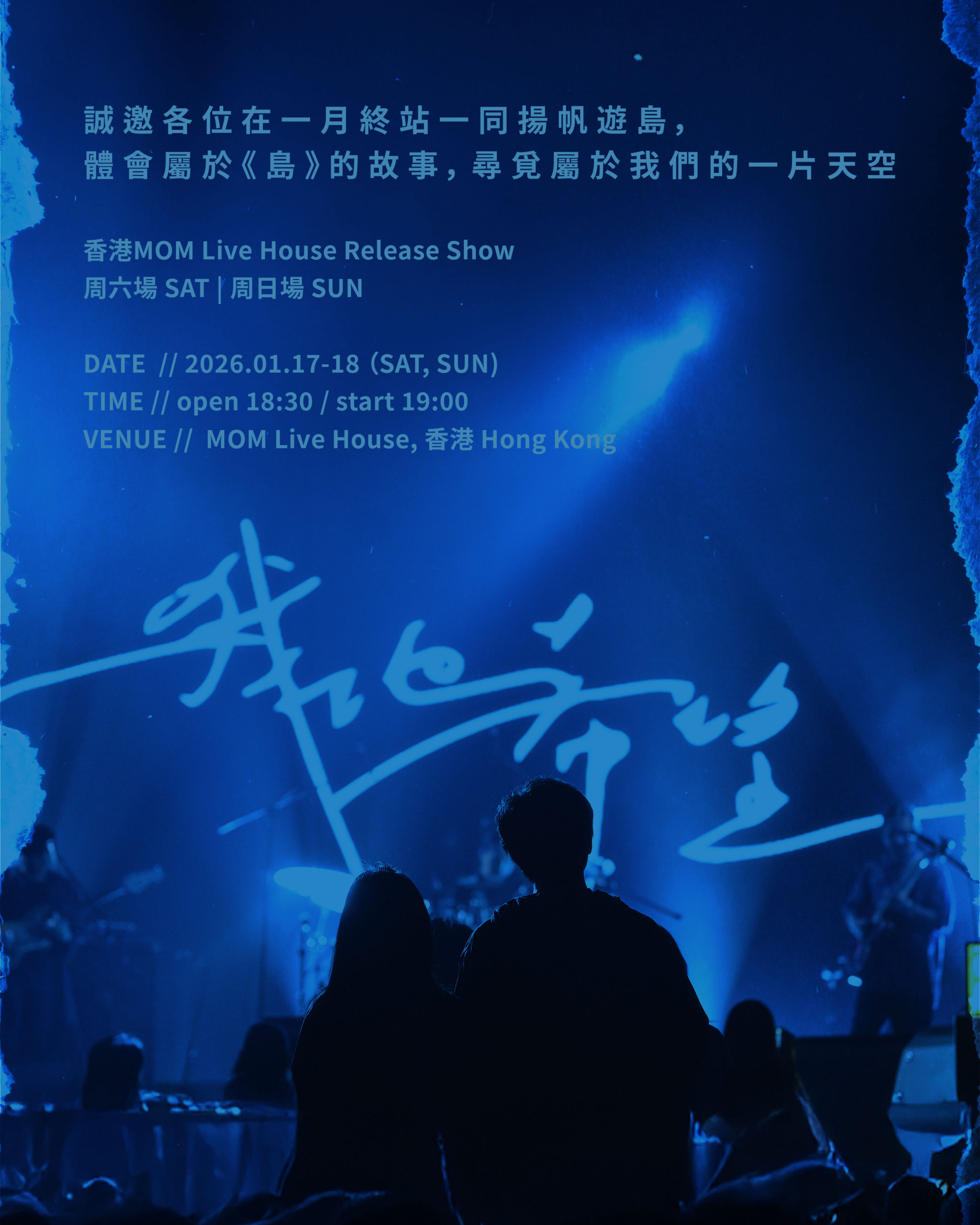 最後,他們從11月起已展開亞洲巡演,其中包括香港、台灣、泰國、日本、深圳、廣州等地。現誠邀各位在一月終站一同揚帆遊島,體會屬於《島》的故事,尋覓屬於我們的一片天空。