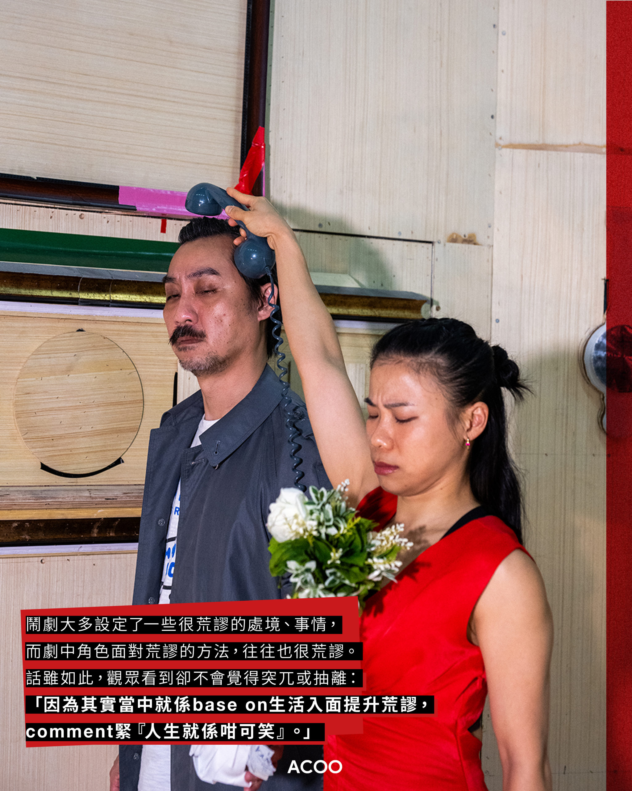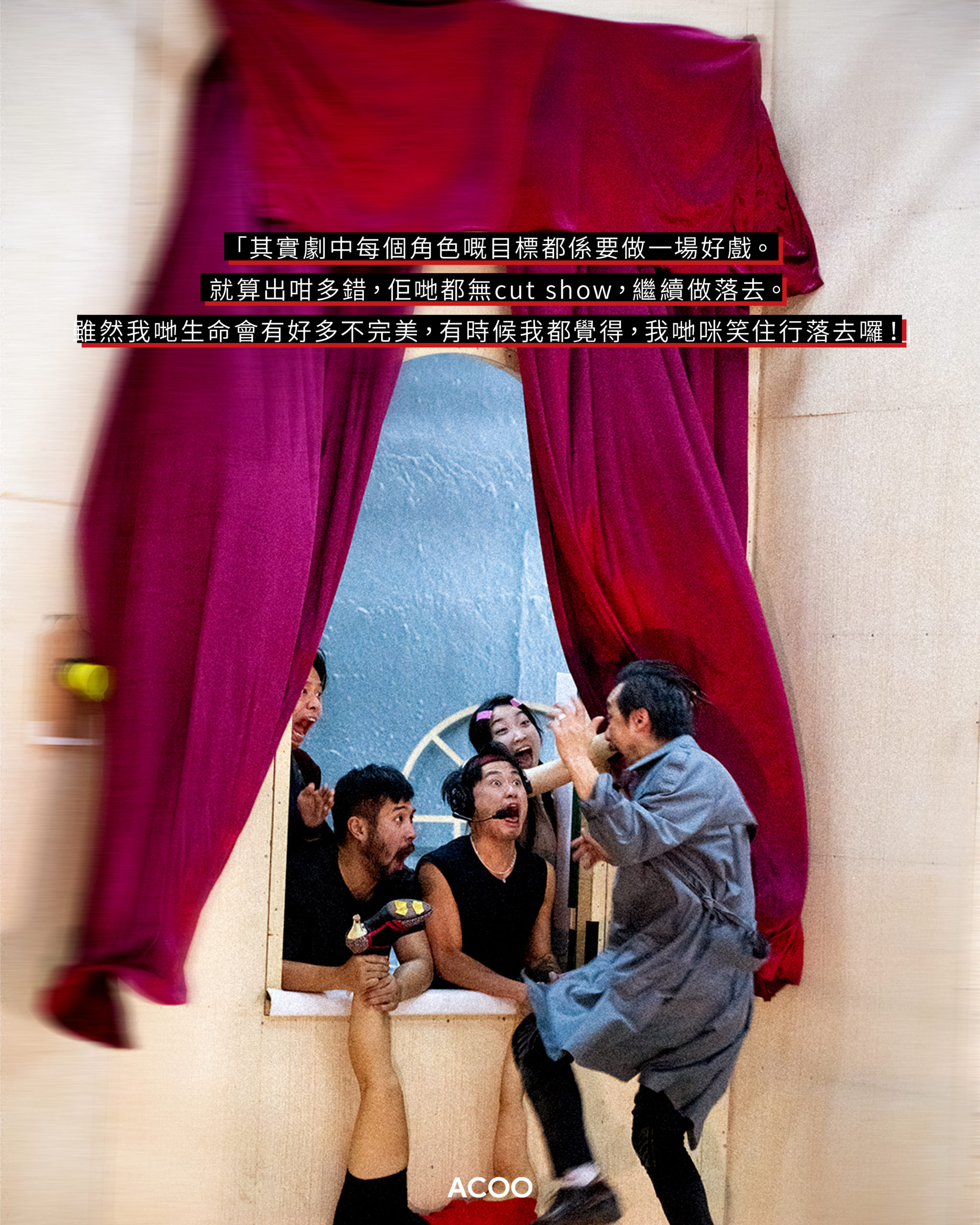 「我覺得大家都好攰啦。無論係經歷咗疫情,或者依家經濟無以前咁好,維生、謀生,其實好多煩惱。我成日都會想問吓人,你上一次笑到咔咔聲,係幾時?好多人都要諗㗎。咁上一次,兩個鐘你都咔咔聲係幾時?我覺得,喺劇場,你可能會搵到呢個空間。」