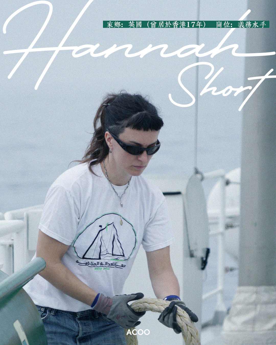 兜兜轉轉,Hannah回流英國。今年適逢「無塑・啟航」東亞之旅在其生日月份以香港為首站,Hannah 從看見招募啟事一刻,便彷彿聽到船艦在呼喚自己。於是,她不惜一個月內完成報名、訓練、辦簽證、執行李程序。終在上月底加入義務水手的團隊。