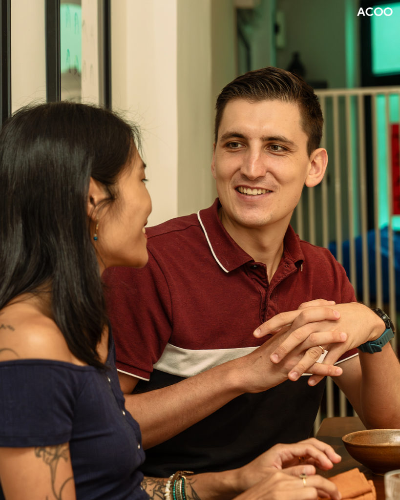 當年正值疫情,Yannick到港後須留在酒店檢疫,百無聊賴,便試著下載交友軟體,也剛好認識一下本地朋友——而第一個和他配對成功的女生,便是Katherine。越是聊下去,二人便越覺投契:Yannick是德法混血兒,在德國讀書時學過英文、法文,Katherine又曾到法國留學,會說流利法文,也熟悉外國文化,「Honestly, after talking to Katherine, all the other conversations were just boring.(老實說,和Katherine聊天後,與其他人的對話令我感到很無聊)」。