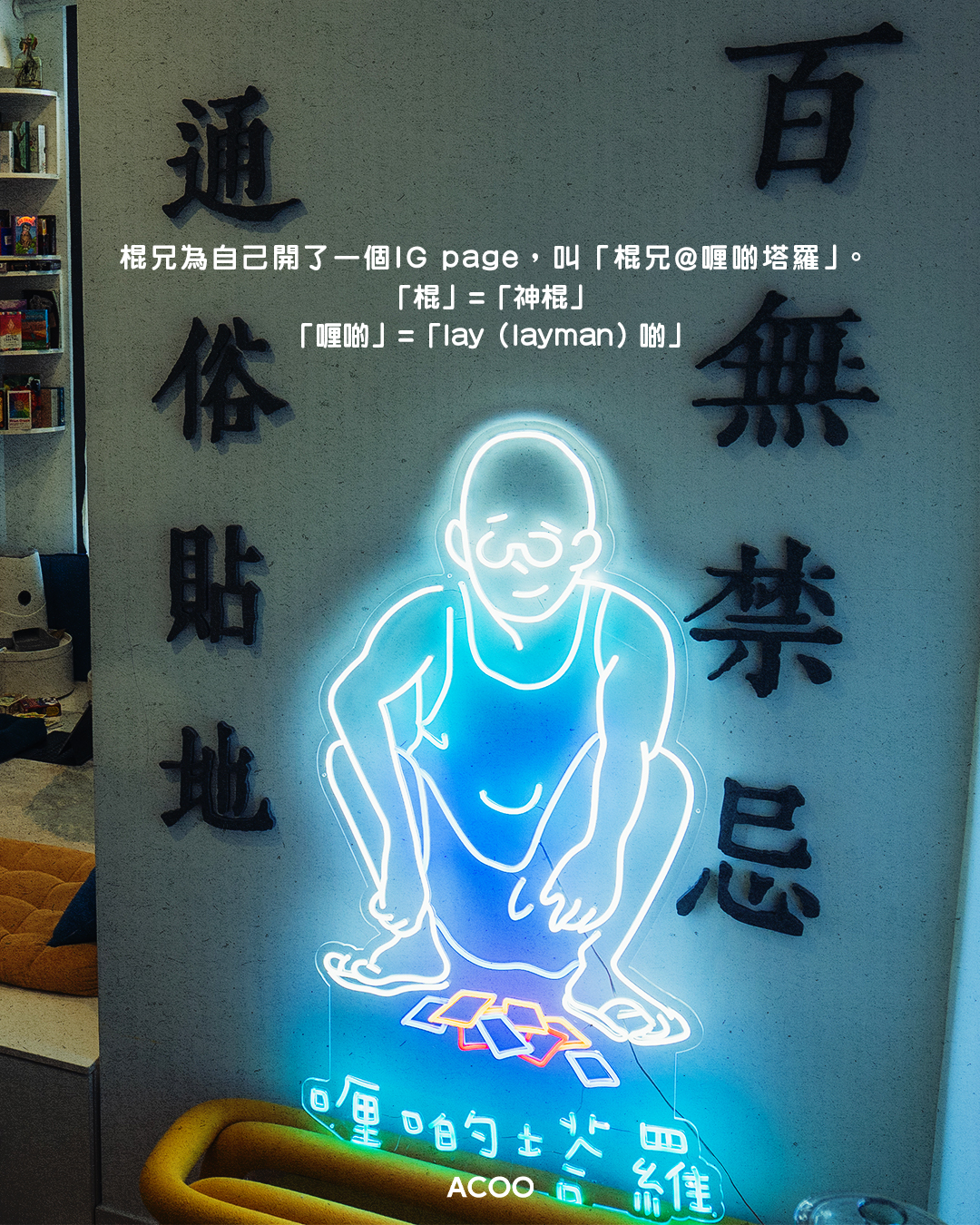 為了開展自己的塔羅事業,棍兄為自己開了一個IG專頁,叫「棍兄@喱啲塔羅」。「棍」是他自嘲「神棍」,「喱啲」即「lay(layman)啲」。有人以為他真身也是光頭,「其實我有頭髮。我嘅brand image係,通俗啲、貼地啲,就好似著住背心踎喺地下嘅感覺」。(後來,他又解釋,他只是不想畫太多筆頭髮,才畫了一個光頭。)