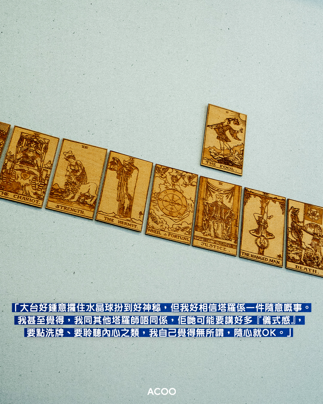 「變紅」並不是他在社交媒體經營自己的原意。反而是,他有感香港人對於塔羅誤解不少:「我好相信塔羅係一件隨意嘅事。我甚至覺得我同其他塔羅師唔同嘅係,佢哋可能要講好多『儀式感』,要點洗牌、要聆聽內心之類,我自己覺得無所謂,隨心就OK。」