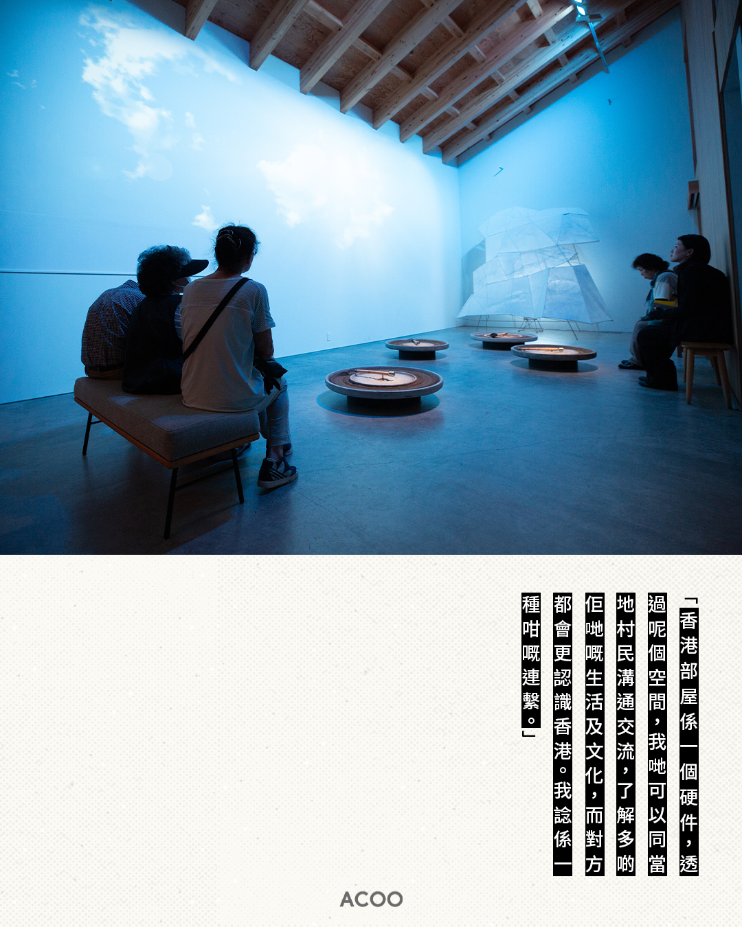 至於他們期盼參觀者有何得着?譚若蘭相信不同國家地區的人都能從一樣的天空中獲得共鳴,「除咗日出日落,或者好似早前香港打風前洗版嘅紫紅色天空圖。希望大家記得呢個時刻,而村民亦會記得我哋留意到佢哋最珍貴嘅自然山野、四季農作。」曾敏富總結:「香港部屋係一個硬件,透過呢個空間,我哋可以同當地村民溝通交流,了解多啲佢哋嘅生活及文化,而對方都會更認識香港。我諗係一種咁嘅連繫。」