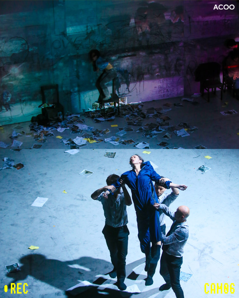 你有計算過每天回家的路,需要走在多少部攝影機的眼皮下嗎?為了準備這部舞蹈作品,潘詩韻笑言看了很多閉路電視,例如大廈用的閉路電視頻道,但最讓她驚訝的是舞團辦公室附近的一間生果舖:「唔知道12格定16格嘅CCTV螢幕,睇住有冇人偷生果,嗰個震撼係原來舖頭都需要一個咁嚴密嘅監管。」表演場館就如日常縮影,特別設置了各16部即時攝影機和投影機,每一個鏡頭也在拍攝不同的動作和空間,同時在現場鋪天蓋地的螢幕中播出,潘詩韻說:「好多social media都capture緊大數據,但係我哋有冇得選擇?可唔可以選擇?所以都透過呢個作品去呈現唔同perspective。」