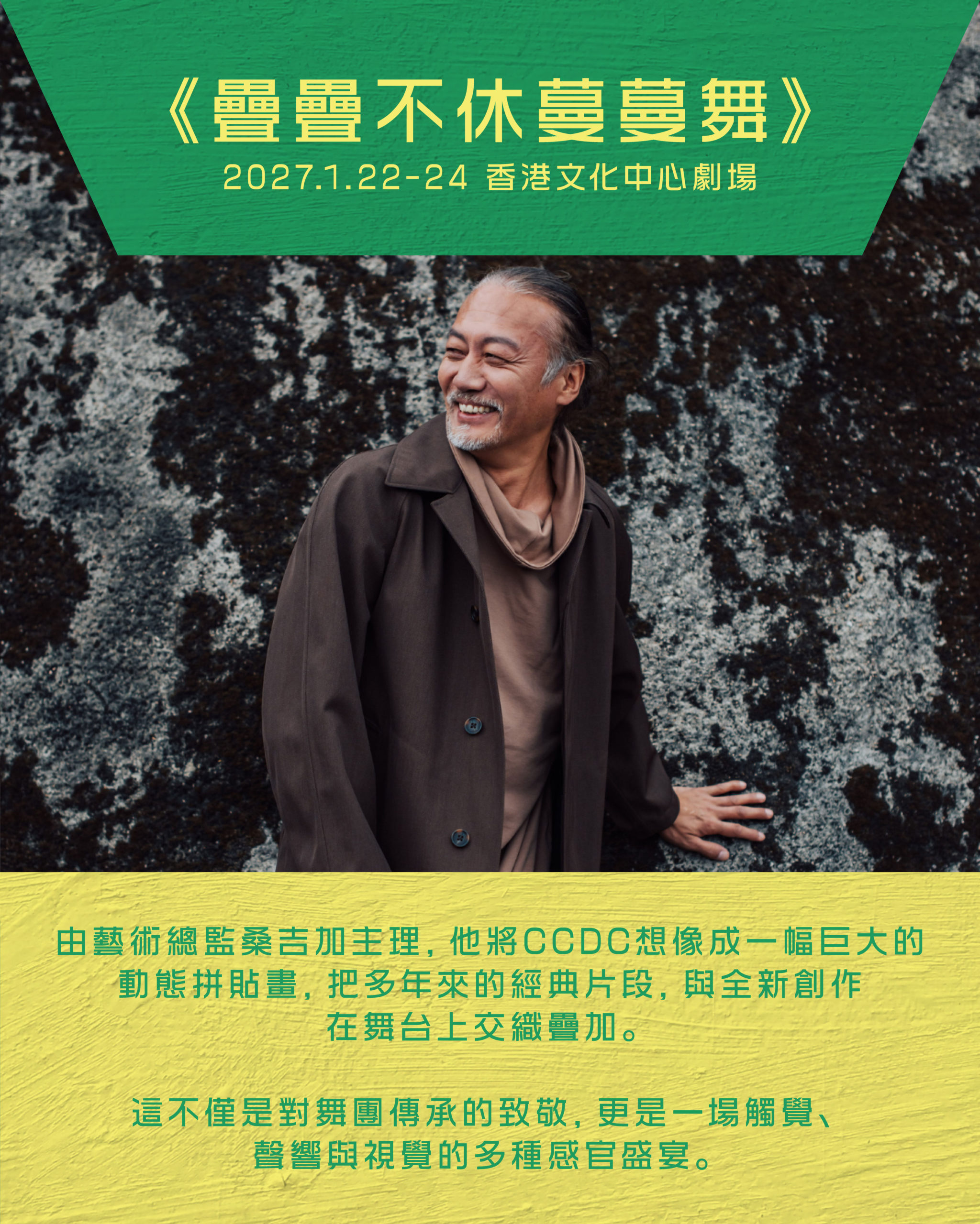明年一月的壓軸作品由藝術總監桑吉加主理。他將CCDC想像成一幅巨大的動態拼貼畫,把多年來的經典片段,與全新創作在舞台上交織疊加。舞者在既熟悉又新穎的節奏中穿梭,過去的動作被賦予新的意義,新的編排又藏著歷史的影子。這不僅是對舞團傳承的致敬,更是一場觸覺、聲響與視覺的多種感官盛宴。