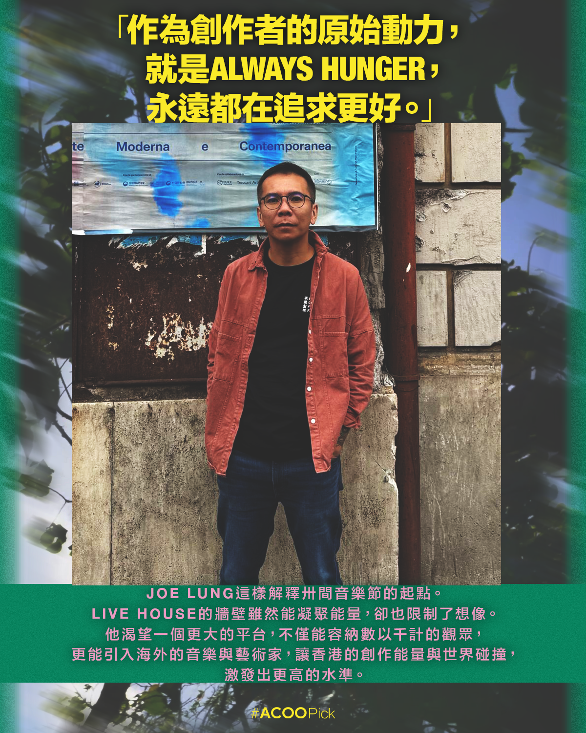 這場盛事的背後,是創辦人Joe Lung。經營著已上軌道的Live House,是什麼讓他覺得「不夠」,決心要將音樂帶到更廣闊的戶外?