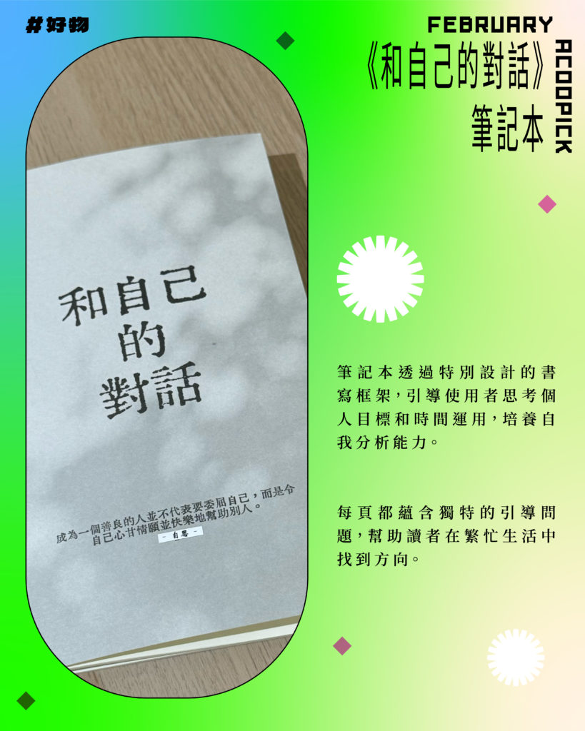 「自思」平台推出全新反思日記《和自己的對話》,為都市人提供一個靜心空間。筆記本透過特別設計的書寫框架,引導使用者思考個人目標和時間運用,培養自我分析能力。每頁都蘊含獨特的引導問題,幫助讀者在繁忙生活中找到方向。