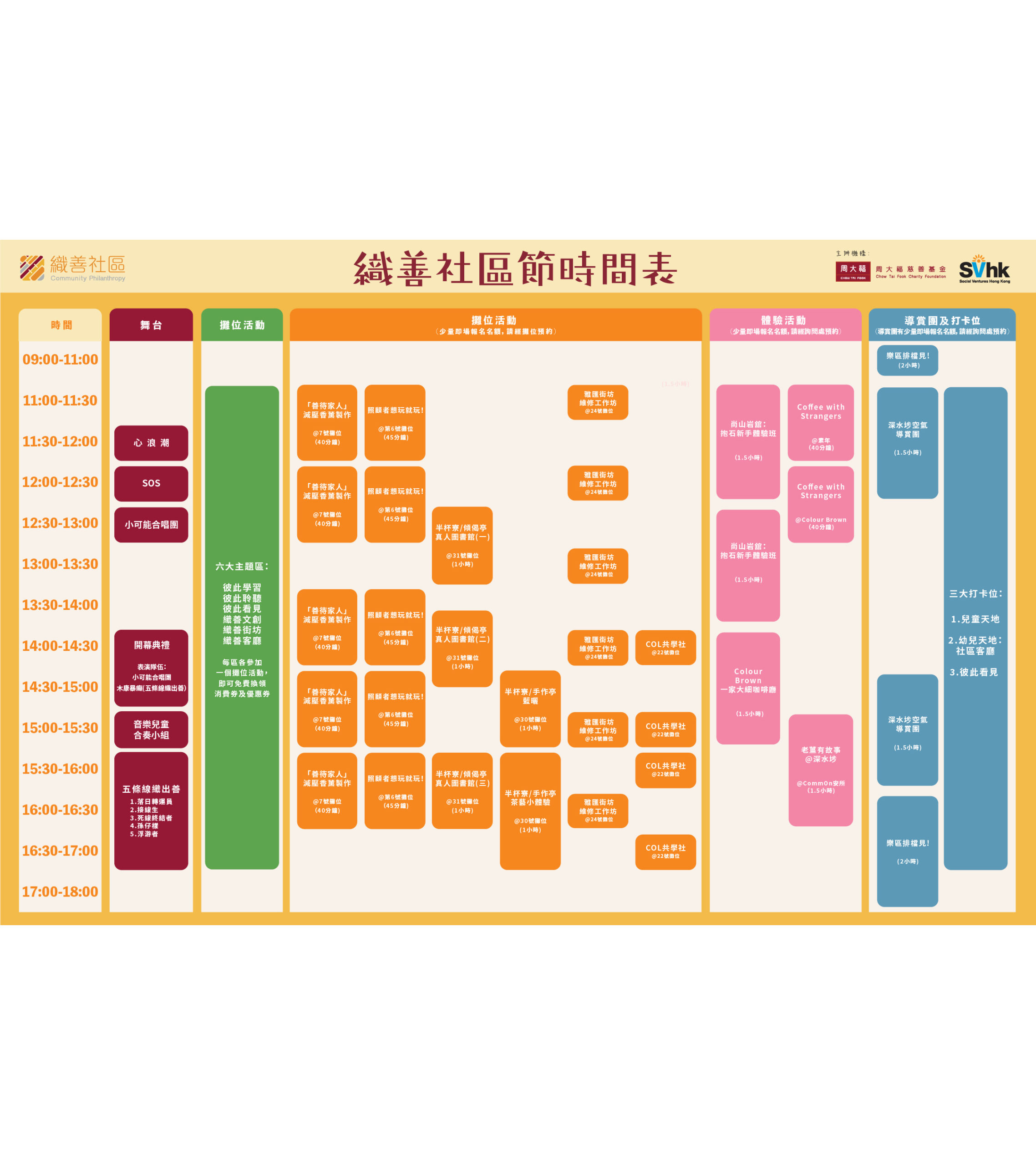 社區節活動費用全免,部分活動及小店消費券有名額限制,先到先得,記得留意「織善社區 Community Philanthropy」公佈啦!