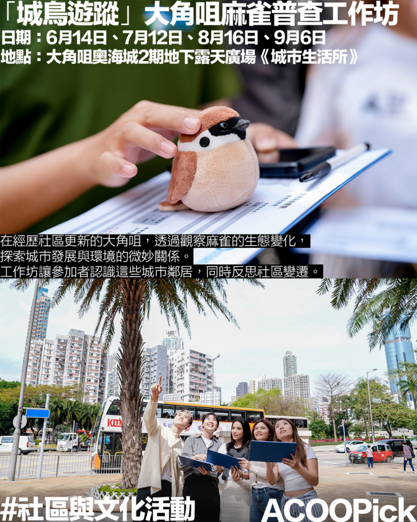 在經歷急速發展的大角咀,樹麻雀成為見證社區變遷的重要生態指標。工作坊透過觀察這些城市鄰居的生活習性,帶領參加者思考城市發展與環境共融的可能性。