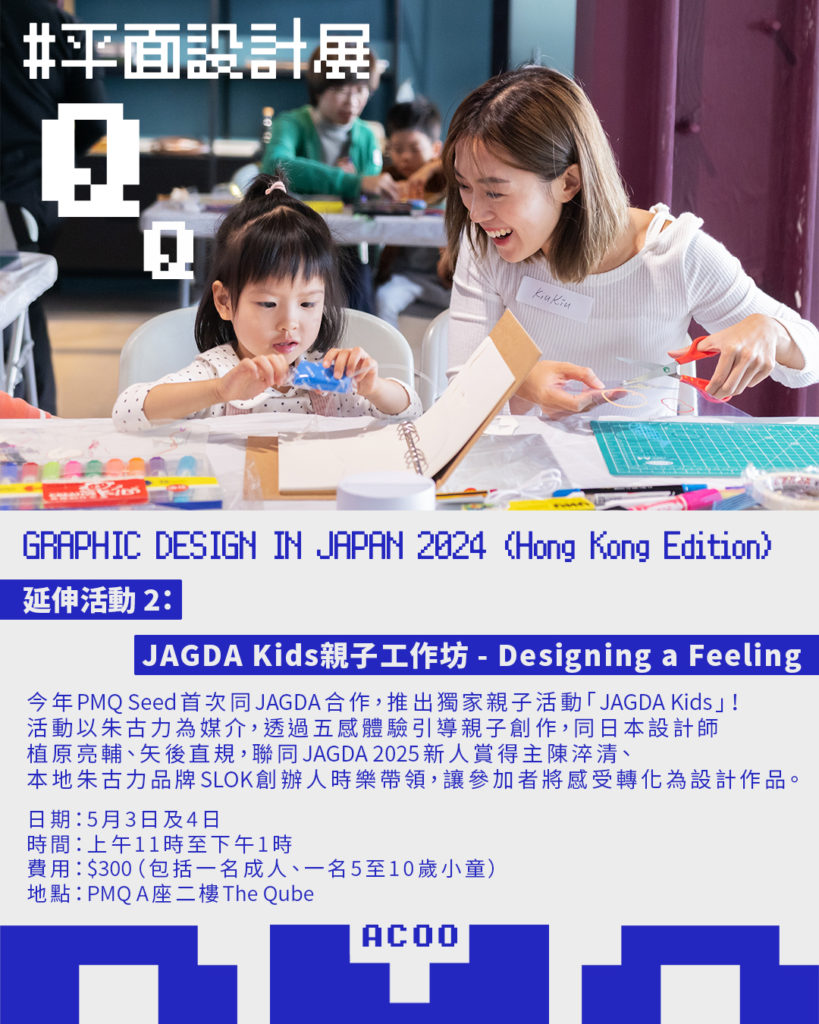 PMQ元創方正舉辦兩大設計文化活動,由亞洲最大設計團體之一JAGDA主辦的《GRAPHIC DESIGN IN JAPAN 2024》第四度登陸香港;另一邊廂,《FEEL FREE, FEEL 3》繪本展為你打開無字世界的想像,分別從設計與閱讀兩個維度,帶給觀眾嶄新的藝術體驗。