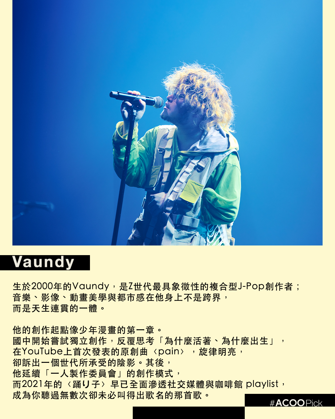 生於2000年的Vaundy,是Z世代最具象徵性的複合型J-Pop創作者;音樂、影像、動畫美學與都市感在他身上不是跨界,而是天生連貫的一體。