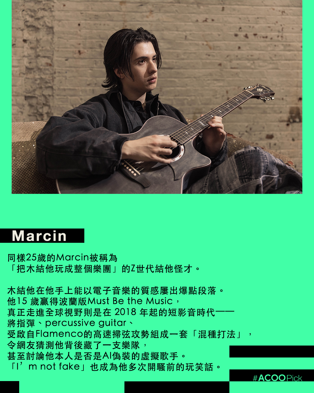 同樣25歲的Marcin被稱為「把木結他他玩成整個樂團」的Z世代結他怪才。