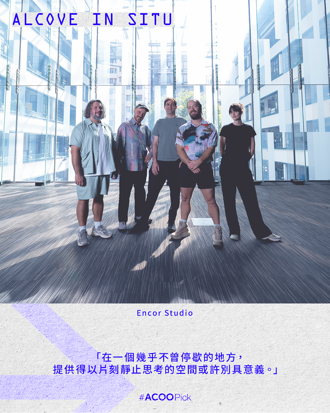 「在一個幾乎不曾停歇的地方,提供得以片刻靜止思考的空間或許別具意義。」Encor Studio 團隊說,「對香港觀眾而言,這種減法體驗或許可以成為暫停點——一個再重新投入城市洪流之前,與自我重新連結的機會。無需任何準備,只需在場,讓自己慢下來,感受光線在皮膚上的流轉、聲音如何將你包裹、你的回憶如何重現與消失。」