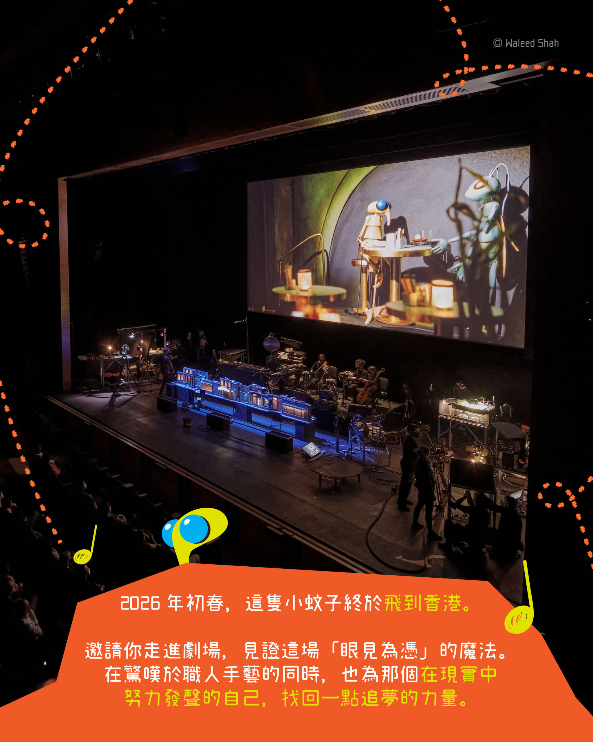 2026年初春,這隻小蚊子飛到香港,邀請你走進劇場,在欣賞這場視聽盛宴的同時,也為那個在城市中努力發聲的自己,找回一點追夢的勇氣。