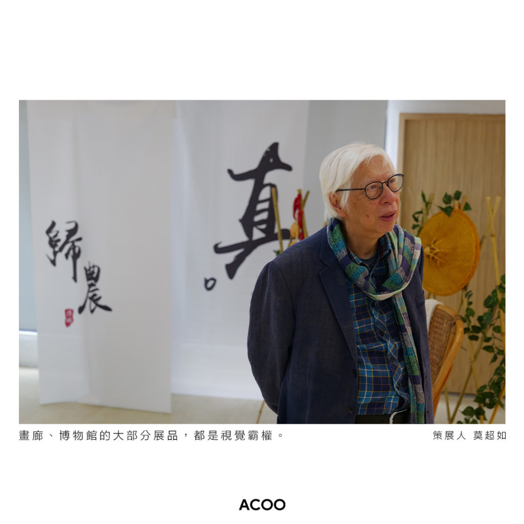 此外,展覽中有不少細節也由Brutus細心準備,如親自收錄的風聲,她說:「我很喜歡這個憤怒的風聲,像是怪責人類不斷破壞大自然。」也有來自她朋友的有機農作物、到處尋寶找來的藤椅,三個展區只有走廊沒有播放背景聲音,Brutus解釋:「因為城市聲音,車聲、學生聲已經是。」處處也得看到她的用心。若有失明人士朋友,不妨也帶他來感受一下特別的體驗;不是失明人士,也很適合來開啟五感欣賞藝術的新方式,找回那種獨有的平靜。