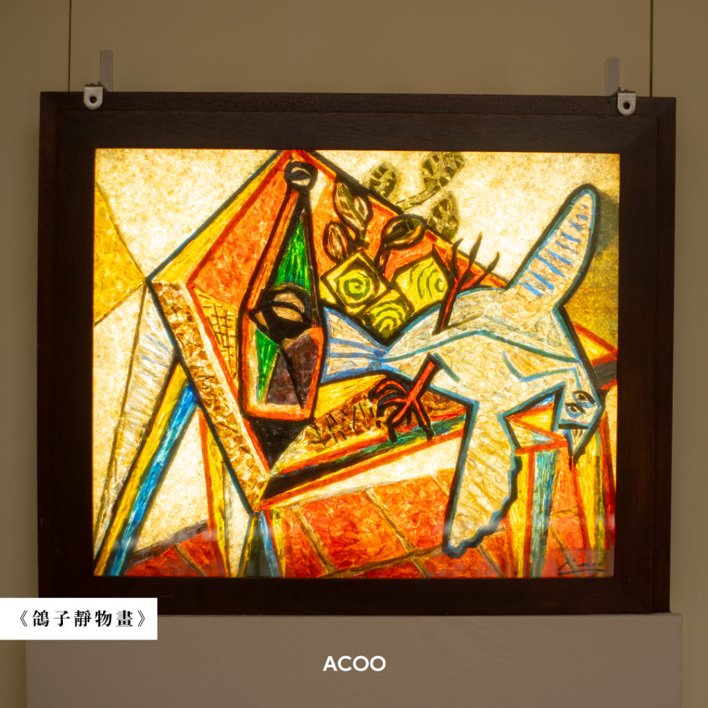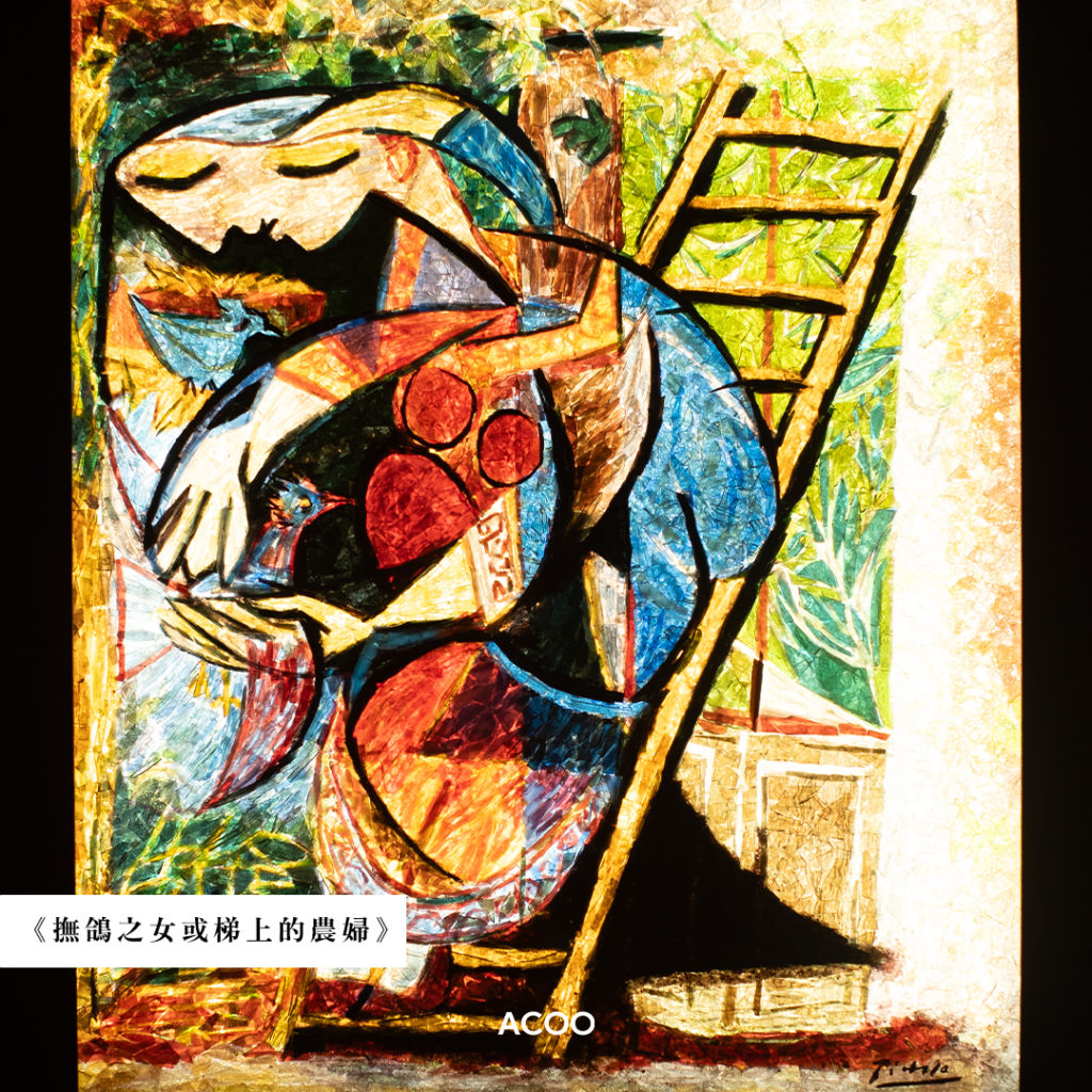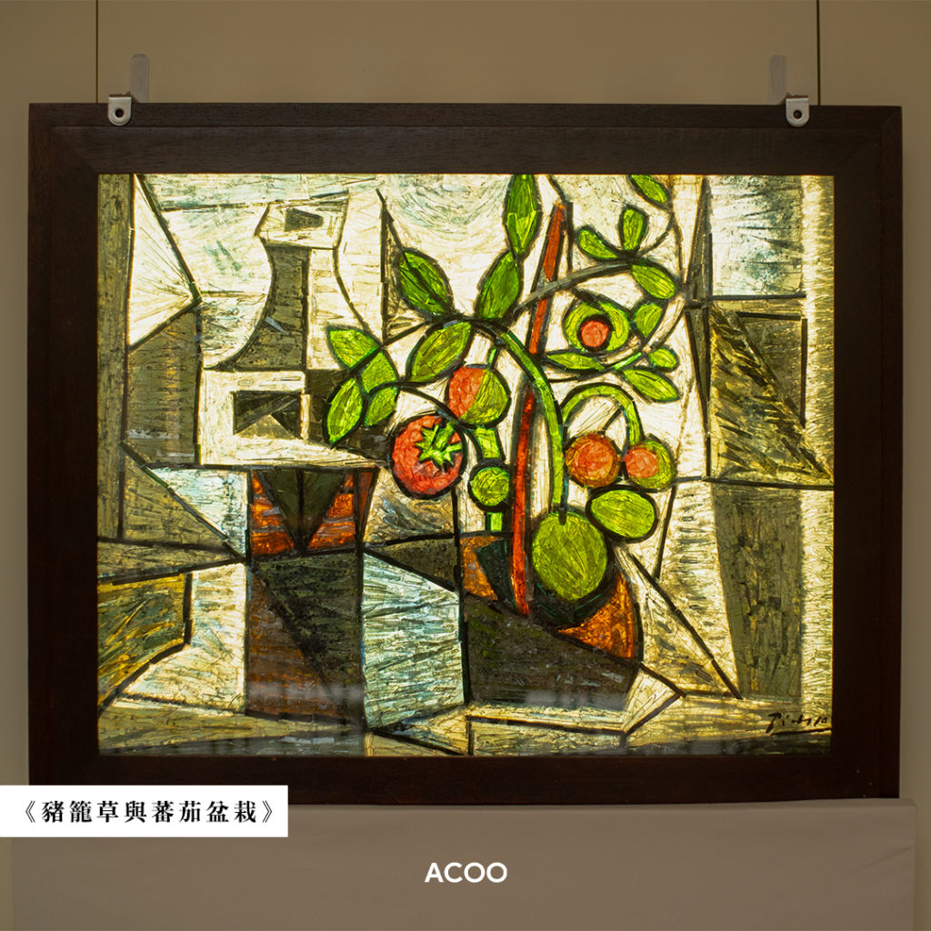 今年是二十世紀藝術大師巴勃羅 · 畢加索(Pablo Picasso)逝世50週年,他一生以畫作、雕塑、版畫等聞名於世,對藝術的熱情和探索從未停下來。在他晚年70多歲時,因緣際會之下認識了羅傑・馬萊伯・納瓦爾的工作室及玻璃畫「gemmail」,並對這種精巧的藝術表達方式驚嘆不已,便決定挑選50至60幅舊作,並授權讓工作室把它們二次創作。同一幅作品,在兩種截然不同的表達裏,彷如在玻璃的拼砌、堆疊之下得到了新生命,打破了原作的創作風格和色彩,或許是畢加索回望過去的一種豁然。