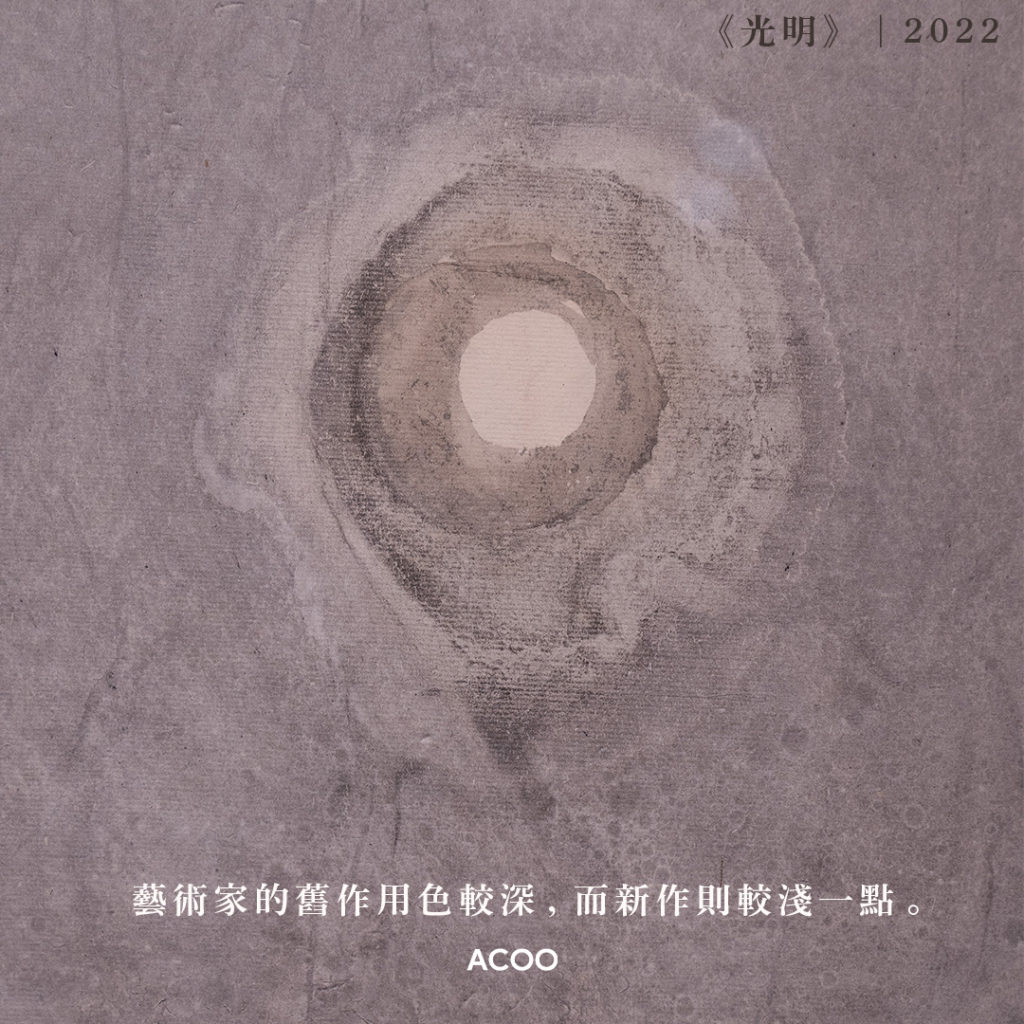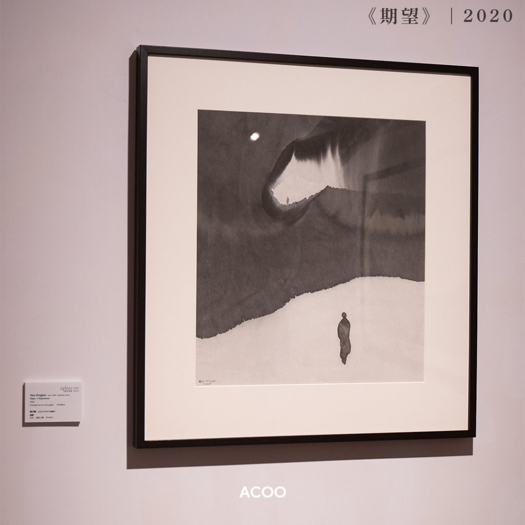 展覽展出藝術家兩個時期的創作,分別是00年至10年代、以及2020年至2022年的作品。從前,高行健的用色較深,而新作則是淺灰一點,在《光明》高掛空中的明月,甚至散發着點點光芒,是前所未有的改變。