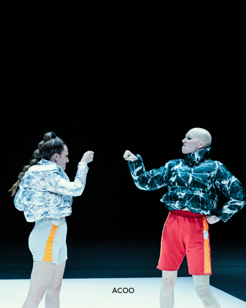 在網上搜尋「當代舞」,維基百科的相關解釋,看起來就是讓人卻步:收縮-放鬆 (contract-release)、地面作業 (floor work)、倒下與復原 (fall and recovery)等。踏進西九自由空間的大盒後,觀眾席與舞台只有約半米距離,舞蹈員的呼吸、表情和動作全部都清楚收進眼底。《女俠傳奇》的雙人組合,來自德國的編舞家Lisa Rykena及Carolin Jüngst化身超級英雄,透過聲音、燈光和肢體動作,自然的就能讓觀眾「腦補」看不見的超能力,還有那些存在於你我心中的敵人或困難。