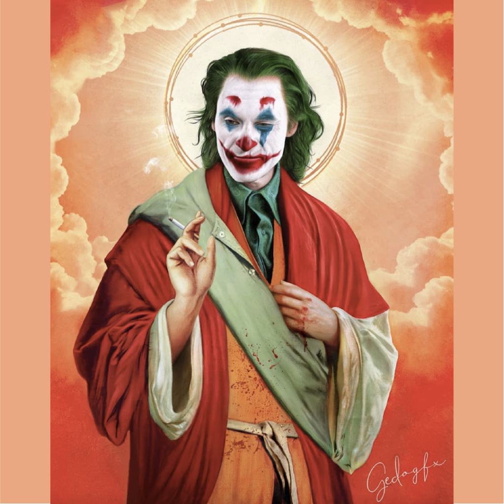 看似格格不入的配搭其實創意爆棚,更成為了 @gedogfx 的獨特象徵。開始創作的原因相當簡單:「我是一個電影迷,同時熱愛藝術,於是我決定把兩者結合」。#聖人 系列就是他的原創作品,Gad認為粉絲喜歡創新及獨特的創作,而粉絲們也相當受落!至今Gedogfx 的帳戶粉絲已累積了超過13萬,更把合成畫作印上T Shirt。你會願意把Saint Wick及Saint Joker穿上身嗎?