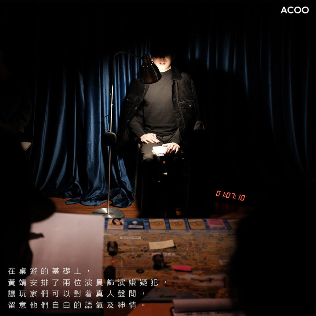 你可能玩過桌遊,也可能曾看過舞台劇,假如兩者結合,會擦出甚麼火花?讀舞台設計及舞台導演導演出身的跨媒介創作人黃靖,從就學時期已經思考「挑戰表演模式」的可能性;疫情3年時深入了解桌遊後無法自拔,發現遊戲原來可以是最新、最前的講故事媒介,更催生出這個瘋狂的意念:何不嘗試把真人角色扮演游戲(LRPG Live-action Role-Playing Game)融入劇場,形成一種嶄新的「遊戲劇場」?眼前的是演員,也是嫌疑犯;你是觀眾,也是偵探。你的一字一句一言一行,竟然也可以影響劇情走向?