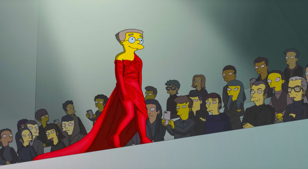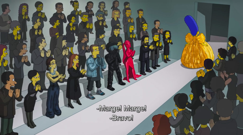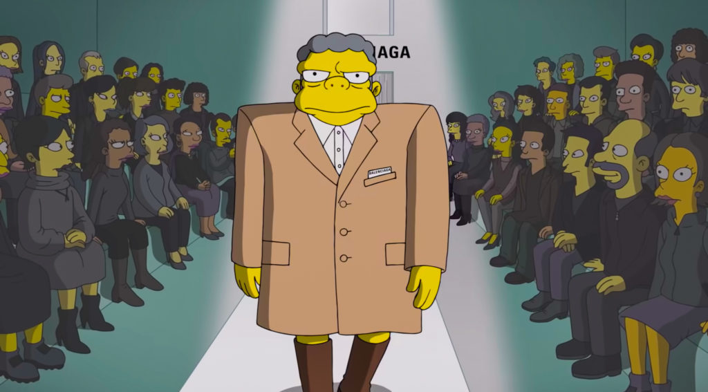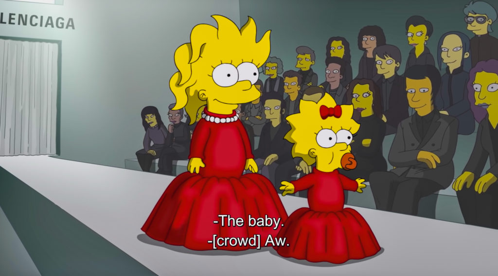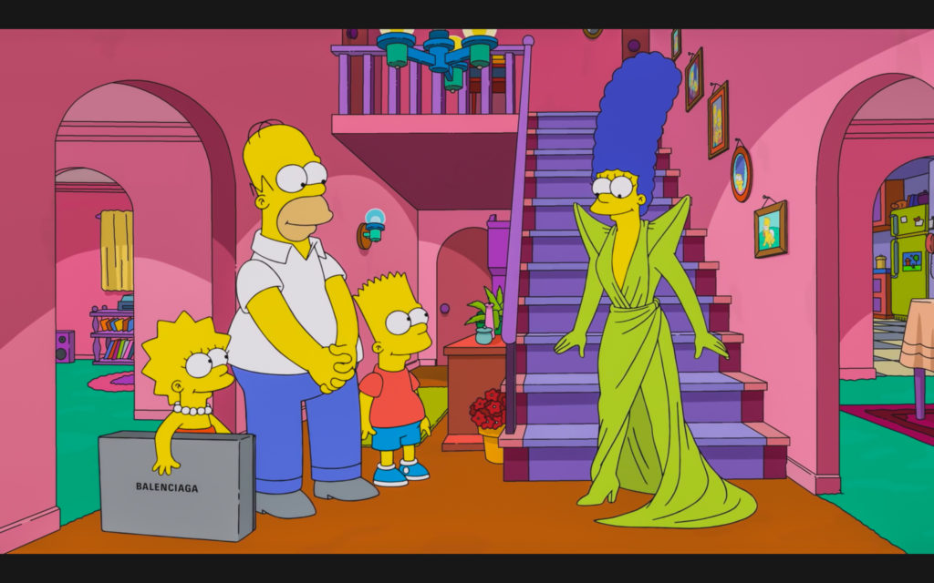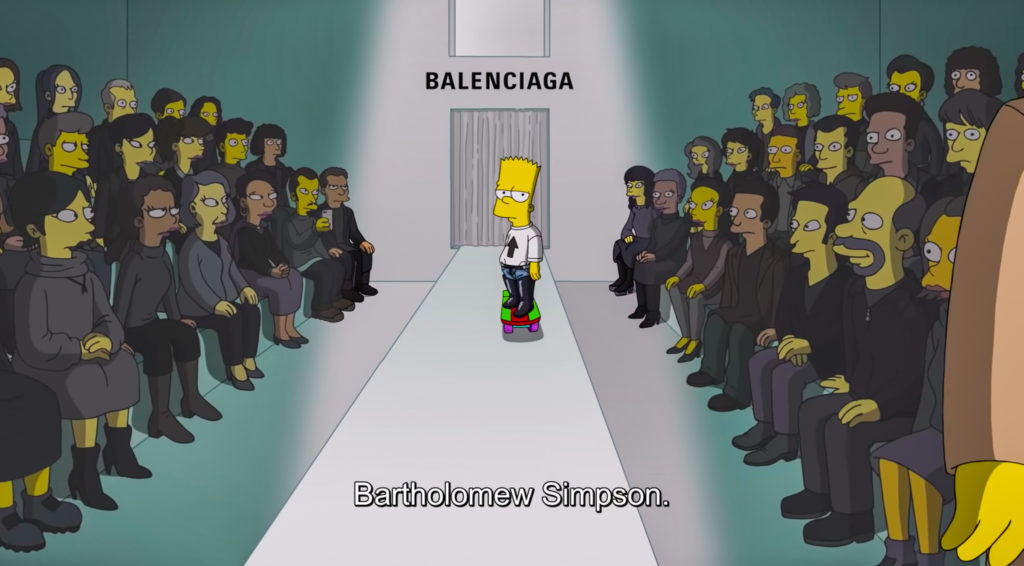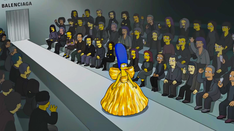 品牌 Balenciaga 與 The Simpsons 合作,在時裝周期間推出短片《The Simpsons|Balenciaga》,講述主角 Homer 為了給太太生日驚喜,特意寫信到 Balenciaga 說服設計總監 Demna Gvasalia 借出禮服。而 Balenciaga 不但送出禮服,更邀請他們一家及 Springfield 的居民當模特兒,除了穿上品牌歷屆經典服裝到巴黎行 catwalk。