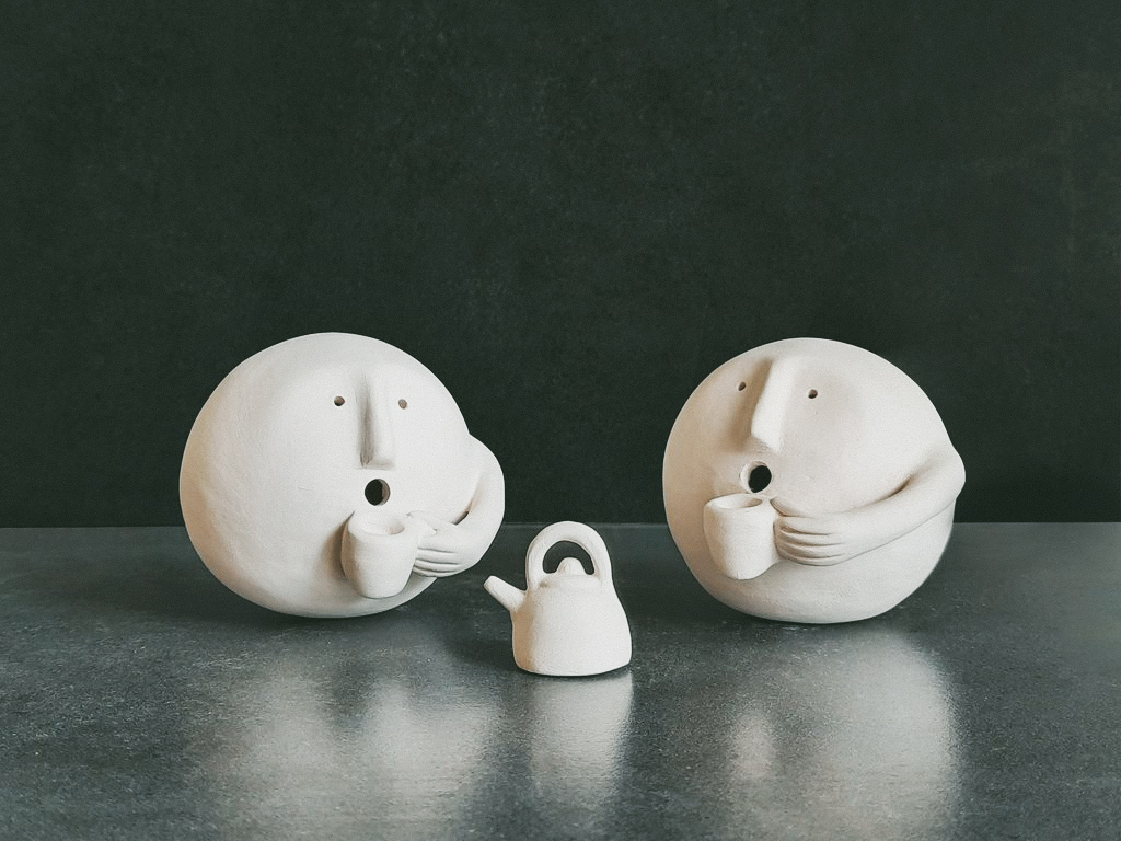 Khanna 來自印度,曾經在倫敦讀書和生活,現於新德里經營工作室。他把日常的觀察融入創作,創造了一個又一個黏土人。在平靜、可愛的外觀背後,他們除了在你身旁靜靜的陪伴,也
