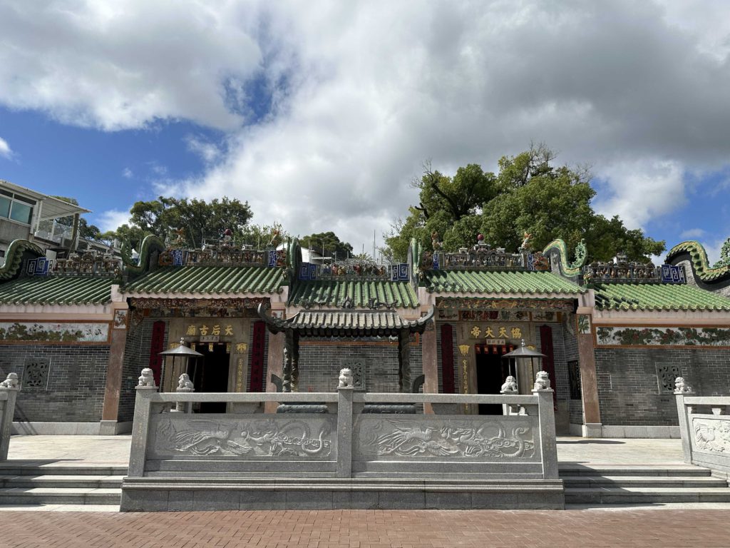 在市中心大街,天后古廟和協天宮(又稱關帝古廟),雖然並非同時建成,但大小一樣,相鄰緊接,從民俗宗教來看其實並不常見,但因為西貢臨近海邊又有多條村落,所以既需要天后娘娘保佑出海安全,也祈求得到關公守護各村利益,才會出現兩座主廟。