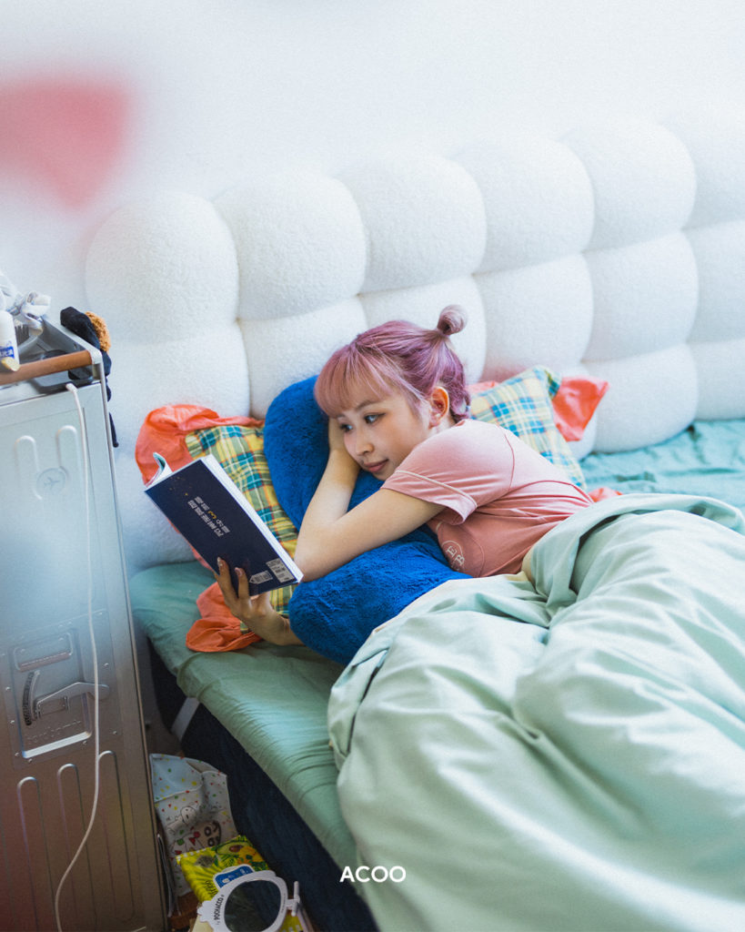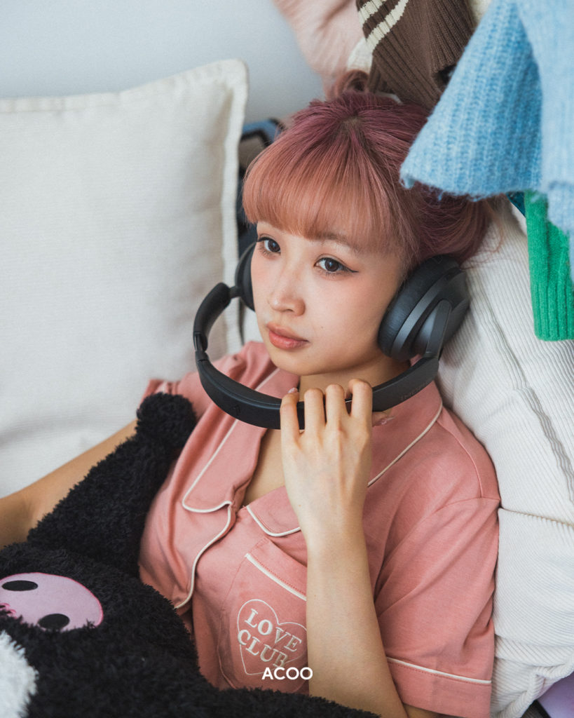 「以前真係好冇目標,所有事都好fucked up(一團糟)。」穿着一整套dirty pink睡衣的嘉盈(Kaying),坐在滿佈攬枕的白色二人座沙發上緩緩說著。綜觀她的小天地,零零星星的生活用品、剛看過的社科書籍、待維修的烏克麗麗散亂一地,加上那牆上撕走海報後留下的Blu-Tack,一如她聽到問題後的每一句答案——毫不掩飾的率真:「21歲時,從來冇諗過之後會做咩,完全唔覺得需要去諗。」每個人也有過去,大多人回望時總會手下留情,給自己辯解「只是個孩子」,但她真的很像一個瘋狂的露體狂。