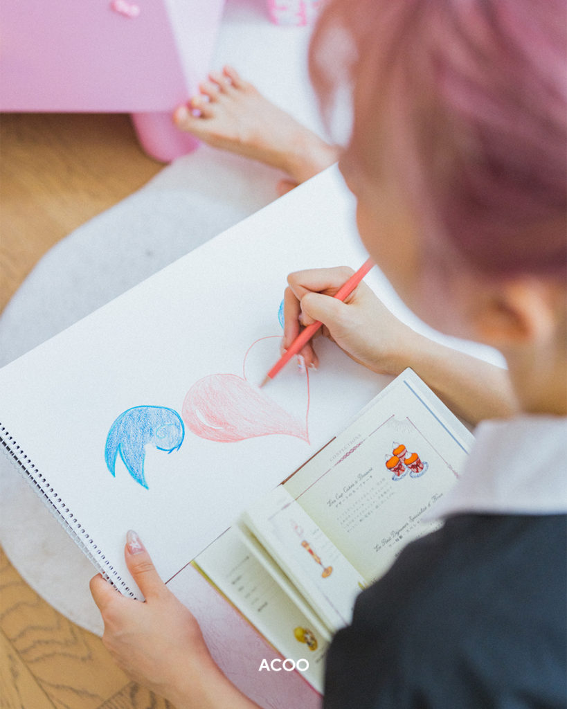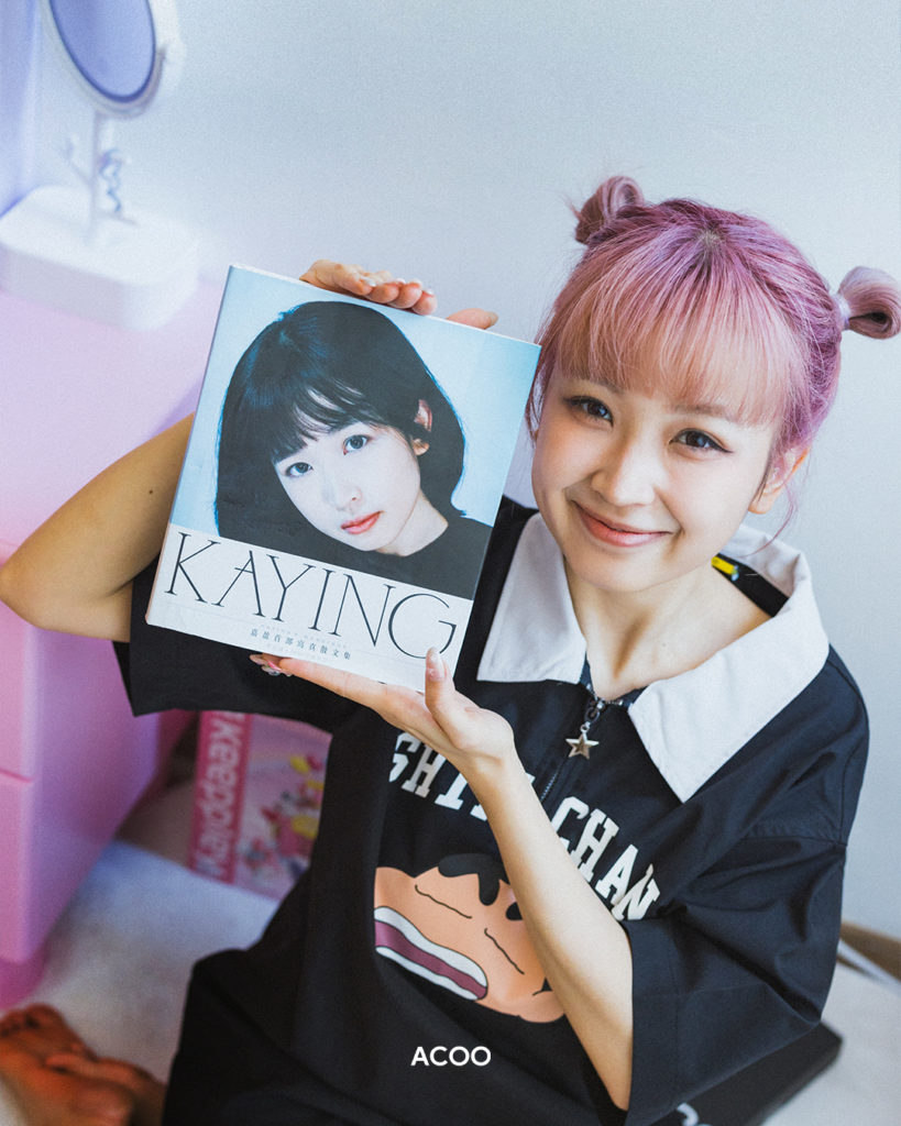 因為最近喜歡Kuromi和Melody,讓嘉盈愛上了粉紅色和紫色,想必她也是一個滿腦子粉紅泡泡的夢幻女孩吧?「我鍾意睇近代史或歷史書,又或者睇真人真事改編,因為我鍾意真實嘅嘢,所以唔鍾意言情小說。」黑膠碟機上,就放了一本中國近代史的書籍,着實顛覆了她的形象。「由女童院開始培養閱讀習慣,嗰度啲書都係鄭梓靈,我都一般般。」雖然如此,現實如牢籠般沒趣,小說卻奇幻得叫人驚喜,「我跌咗入書,世界立即變得天馬行空,幻想力真係好重要。」