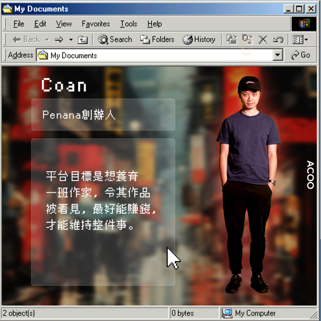 在大學時期,Coen與另一創辦人宋啟鋒對香港電影情有獨鍾,二人偶爾會聚在一起撞橋寫寫東西,那時候便想建立一個平台,與更多人一起集思廣益:「整件事其實也很熱血,是很夢想的一件事。」有了想法,他們便開始執行,先在英文地區推出第一階段的Penana,「那邊的人更開放、更願意給予意見,再完善平台應用在中文市場。」2014年,平台初成立時,Coen主要負責設計、用戶體驗和調整平台的工作,直至上了軌道,他才着力於營運和財務上。
