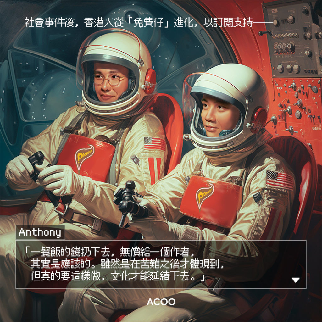 「我覺得和社會事件有關。」Anthony分享個人看法,在19年之前,大多數人漠視本地品牌、創作,卻意外在那年慢慢發掘香港時,看到這些為了興趣而不惜代價寫作的人,「一餐飯的錢扔下去,無償給一個作者,其實是應該的。」之後,不少媒體、創作者也使用訂閱方法養活自己,而從前愛做「免費仔」的香港人,也越來越願意掏出真金白銀來支持,「雖然是在苦難之後才體現到,但真的要這樣做,文化才能延續下去。」