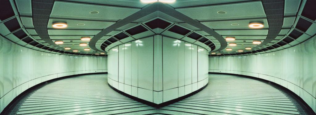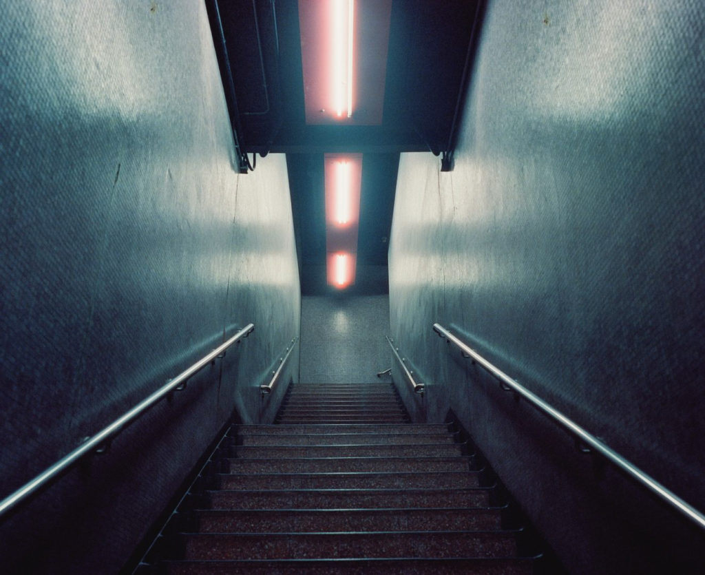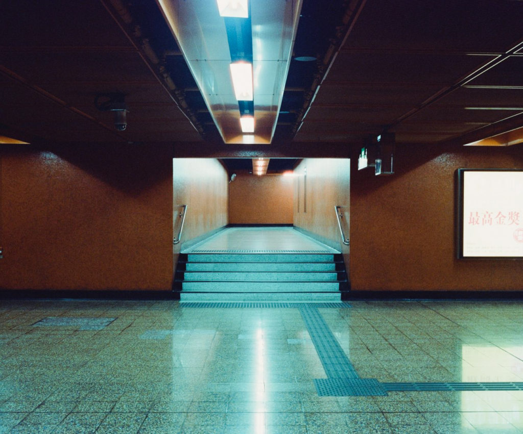 在香港生活的攝影師 Christopher Button 在車站人潮褪去之際,拿起一部 Mamiya 7 中片幅相機,在沉靜的地下通道、走廊、樓梯間、逃生門前,拍下一幅幅熟悉又陌生的畫面。通勤時快步走過的角落,回復寂靜時彷似一條無盡的路,帶領我們走進一個迷宮,一直兜兜轉轉,離不開、出不去,反映了束縛著我們的新世界 — 變幻無常而且充滿限制。然而,即使感到落寞無助,我們還是慢慢學會欣然接受種種未知。