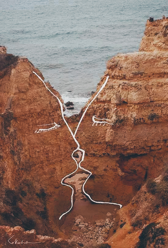 藝術的舞台無制限,正如以色列藝術家 Shira Barzilay 所指,「這個世界是我的畫布」,天空、山坡、大海、建築物、水窪…… 任何角落都可以作畫。Barzilay 以簡約線條在照片上畫出人臉、身體,創作出不同作品,並以這種風格定義為自己的特色,塑造自家品牌。